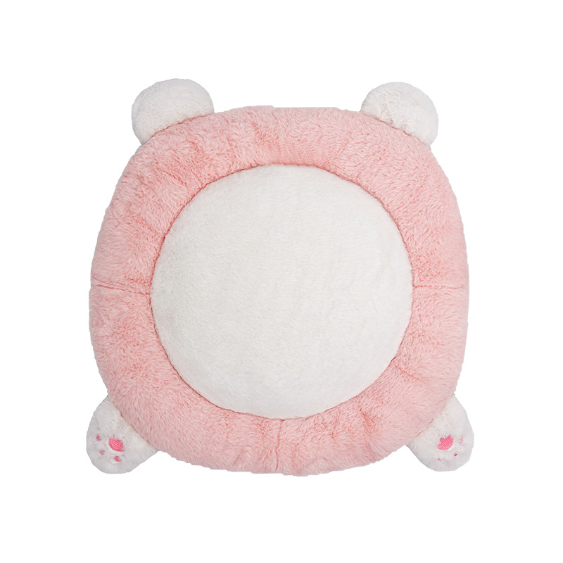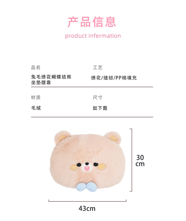 rabbit fur embroidered bow bear lumbar support pillow round