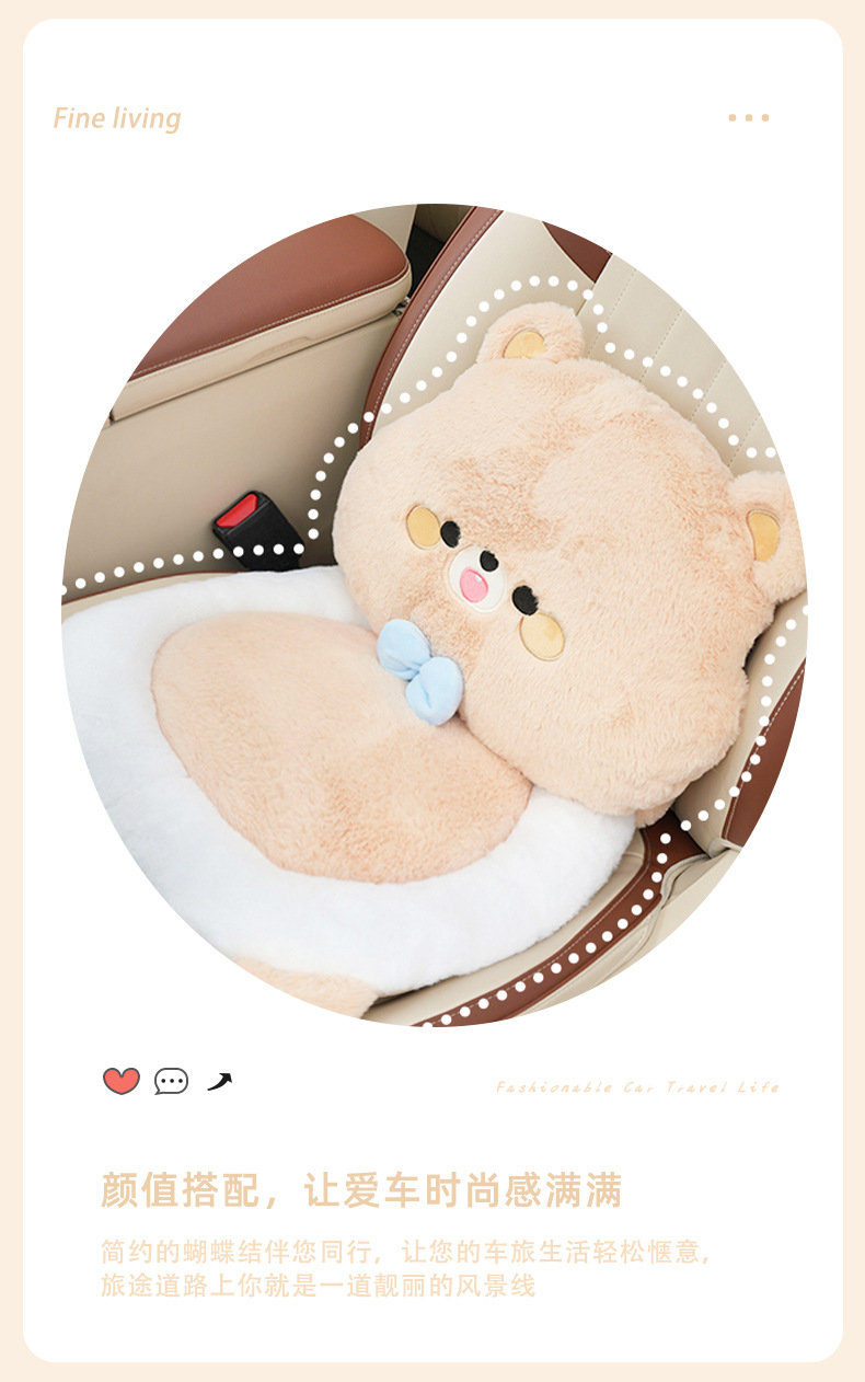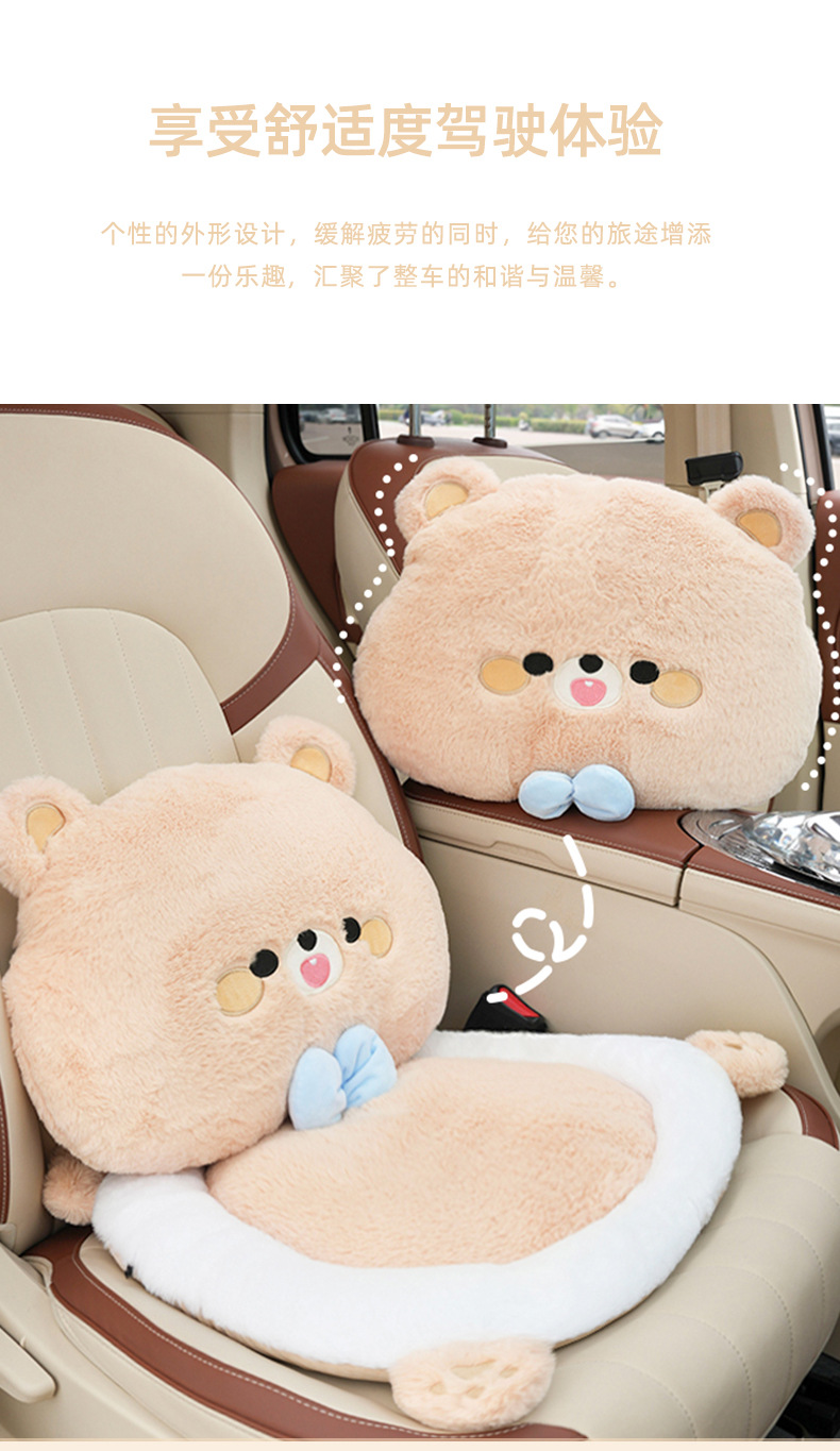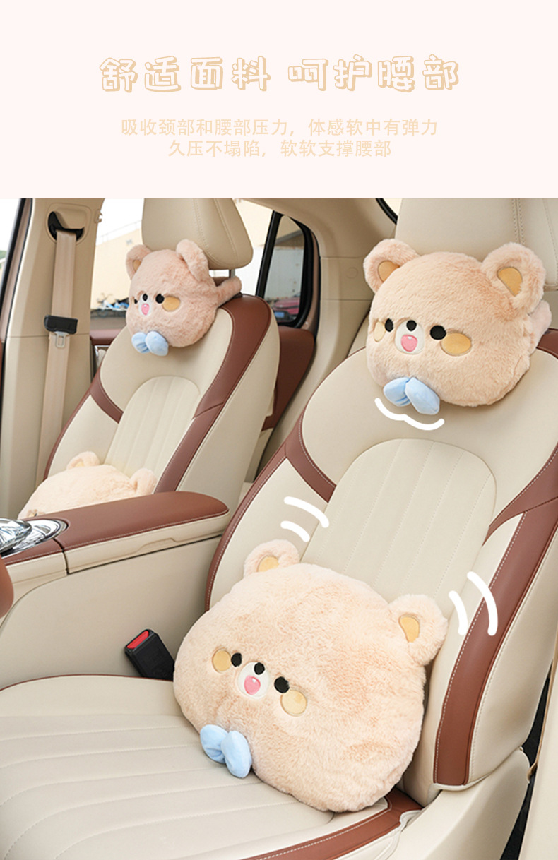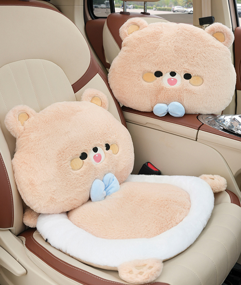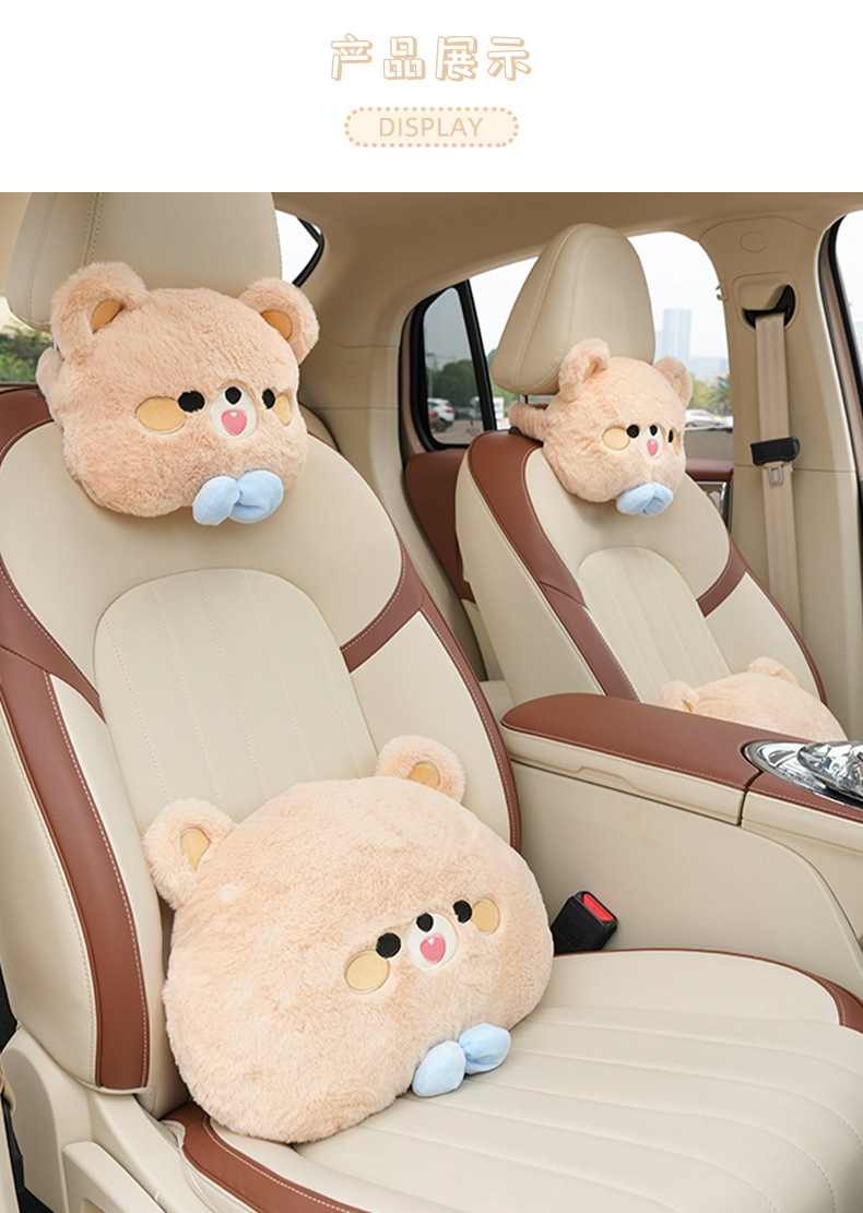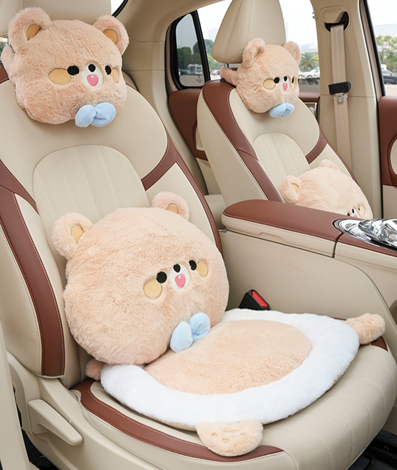 rabbit fur embroidered bow bear headrest