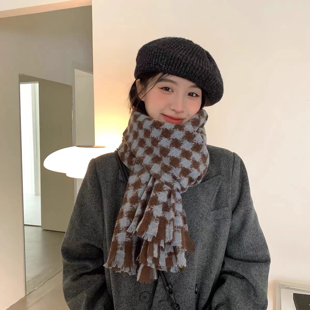 double-sided houndstooth brown