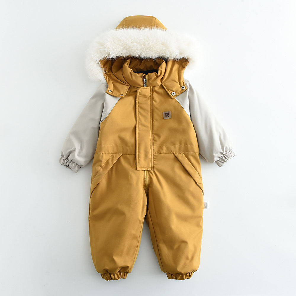 2024 Winter New Arrival, Large Fur Collar, Kids Pieced Color Thin Ski Suit, Baby One-Piece Suit for Climbing