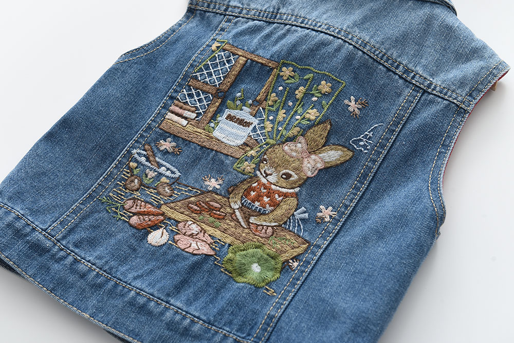 2023 Spring New Arrival - Little Rabbit Kitchen Embroidered Dress - Girl's Collar Denim Vest