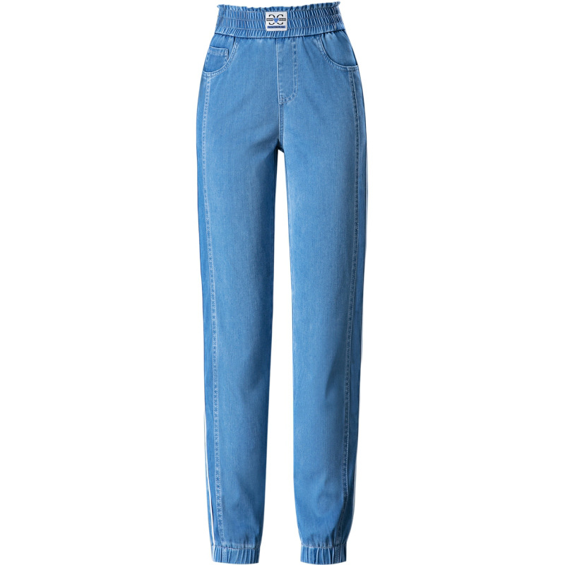 lyocell jeans women's ultra-thin high waist ankle-tied harem pants small mother ice silk draping effect slimming cropped pants