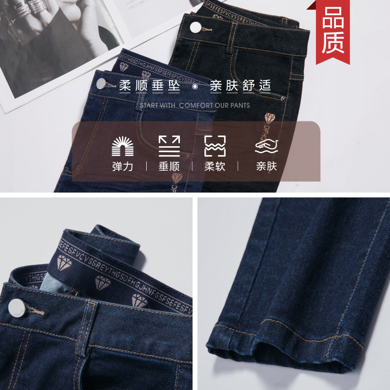 middle-aged mothers' black jeans women's autumn new high waist straight pants elastic slim fit slimming all-matching long pants