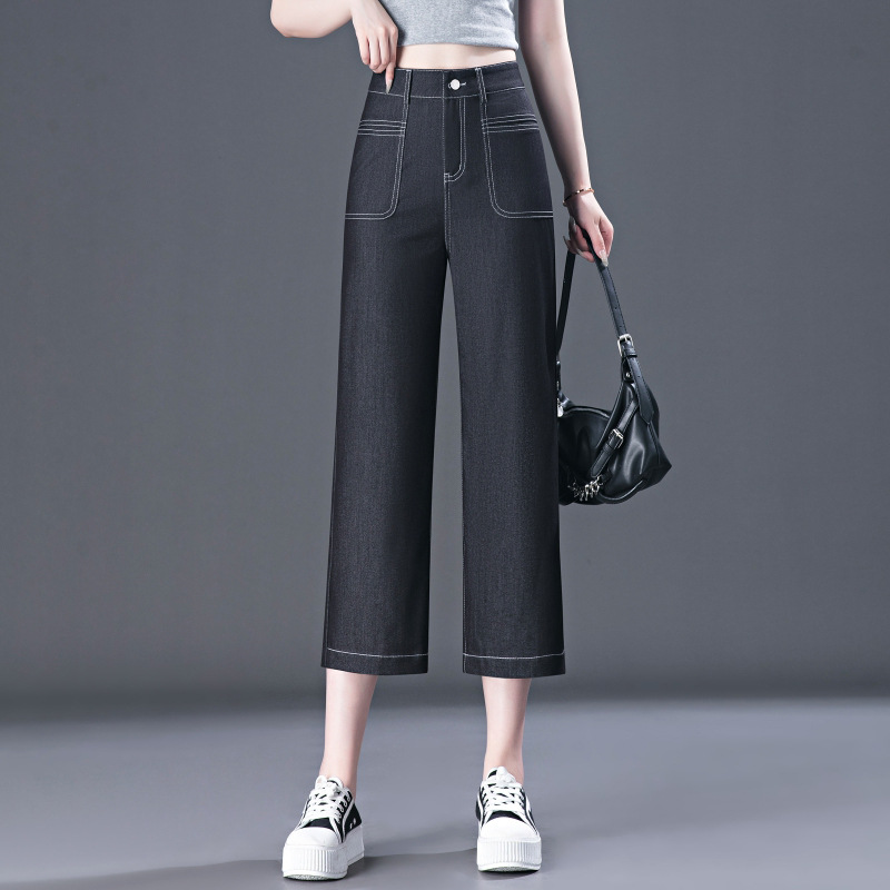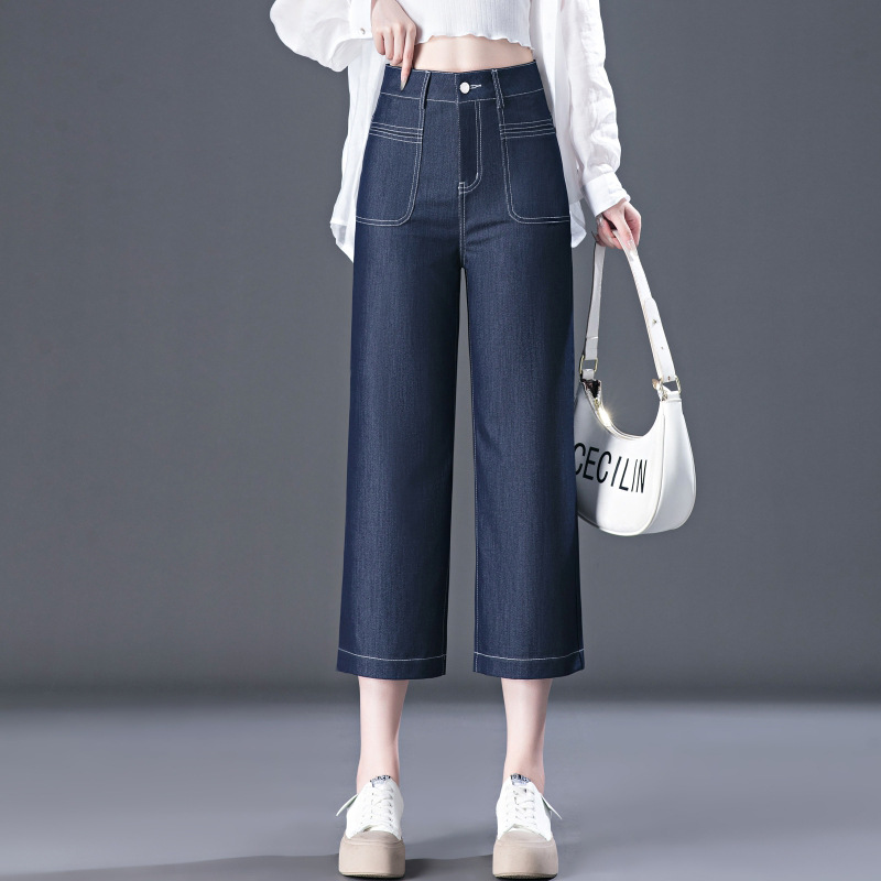 high waist wide leg jeans for women 2024 summer new loose drooping thin dark blue middle-aged mother cropped pants