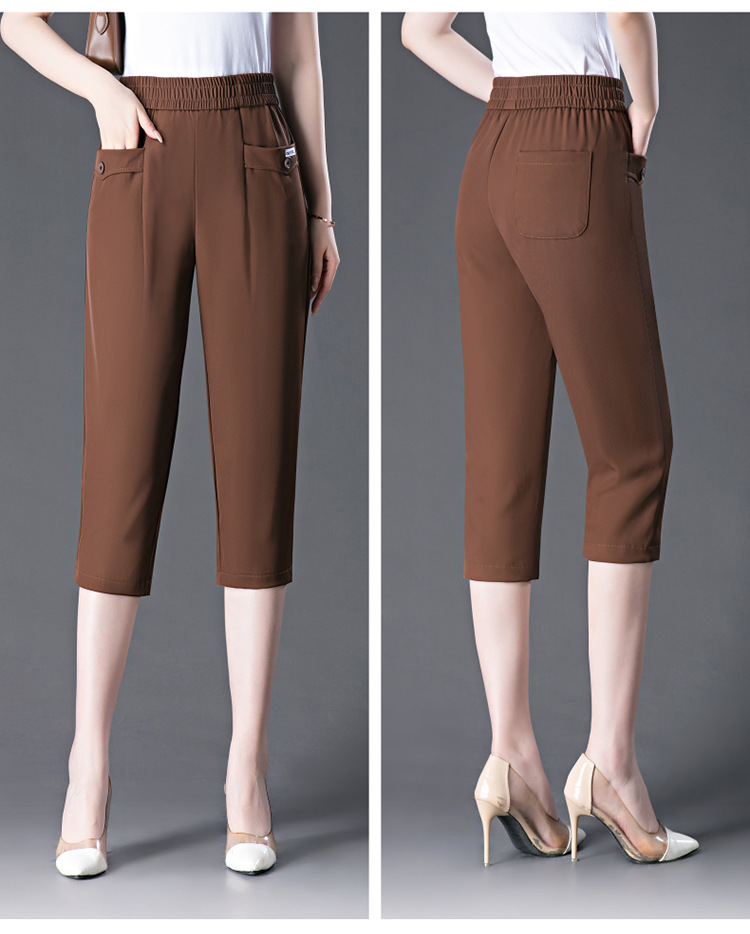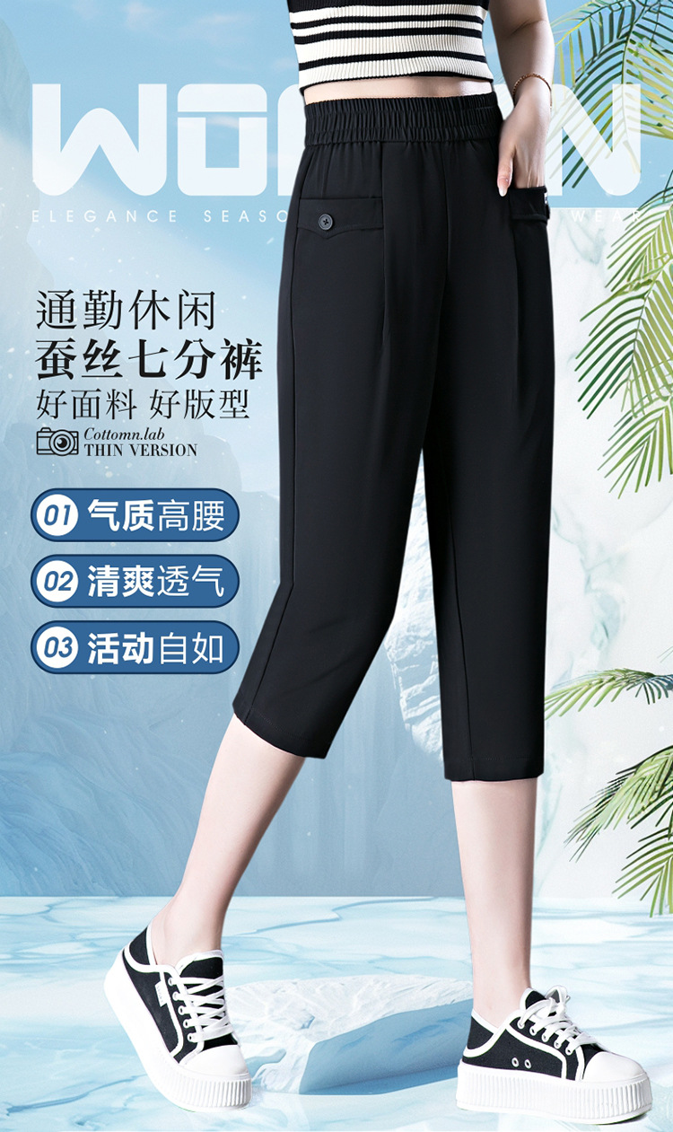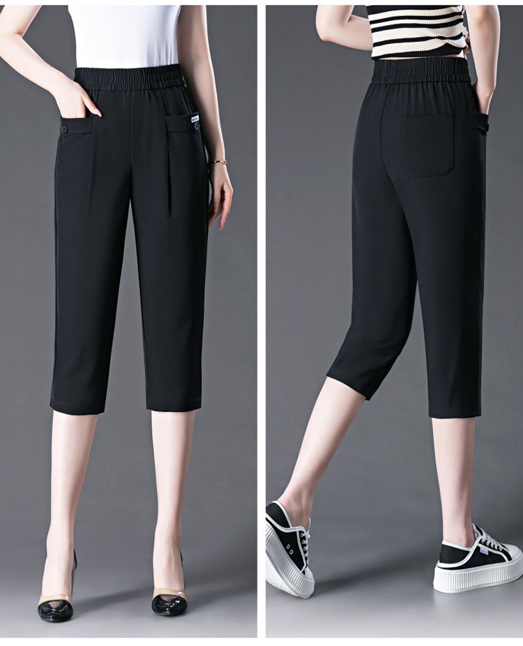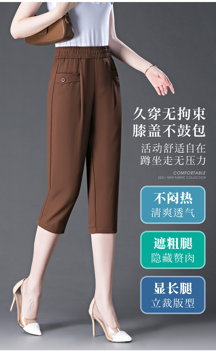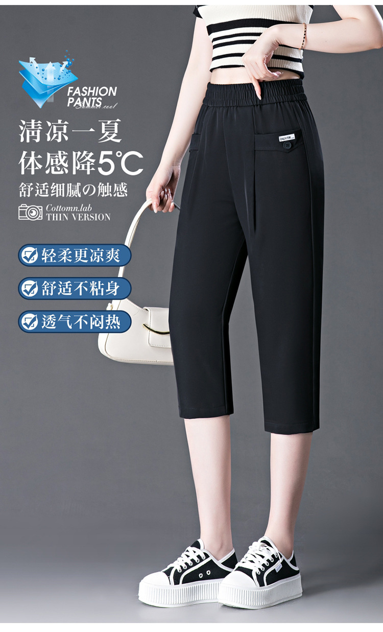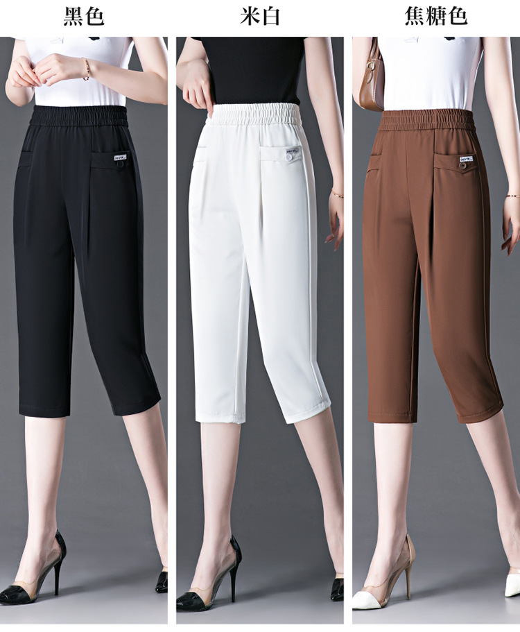 capri harem pants female 2024 summer ice silk draping thin loose plus size middle-aged mother all-matching casual pants