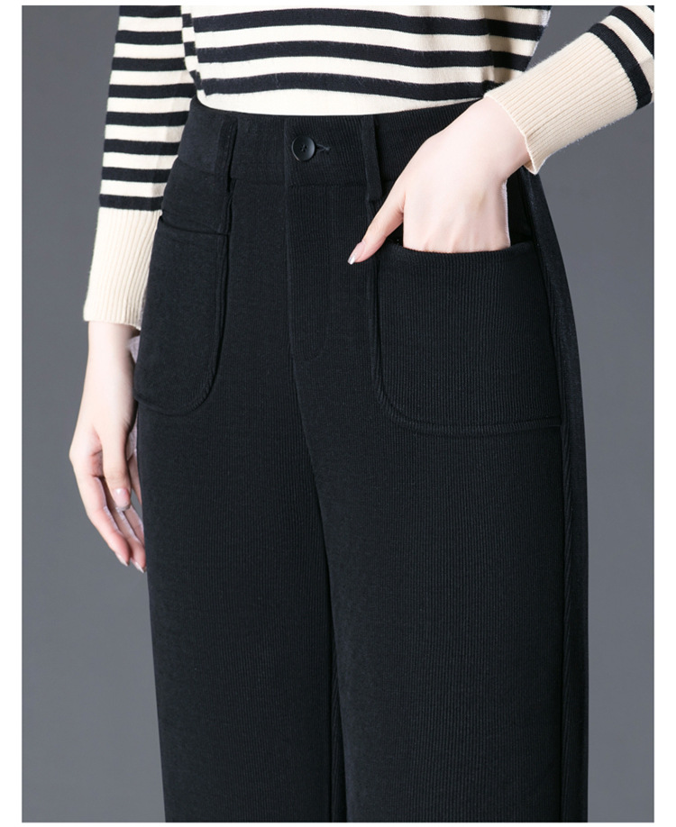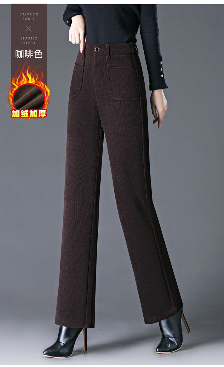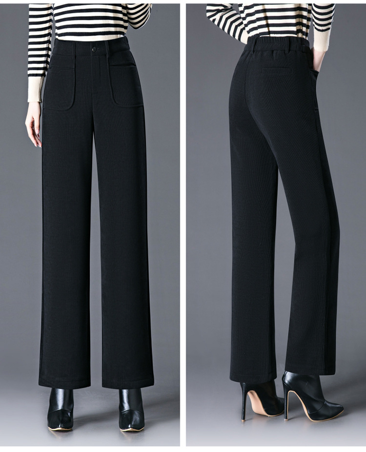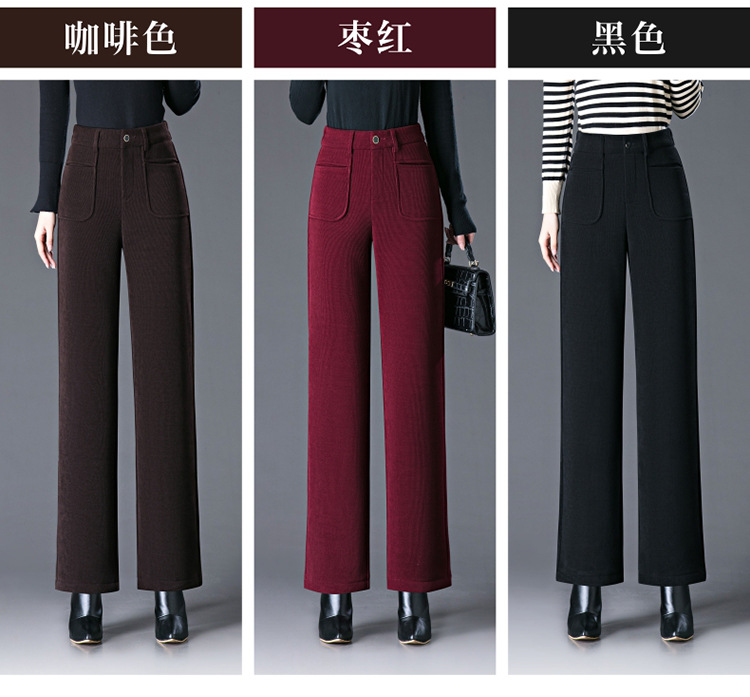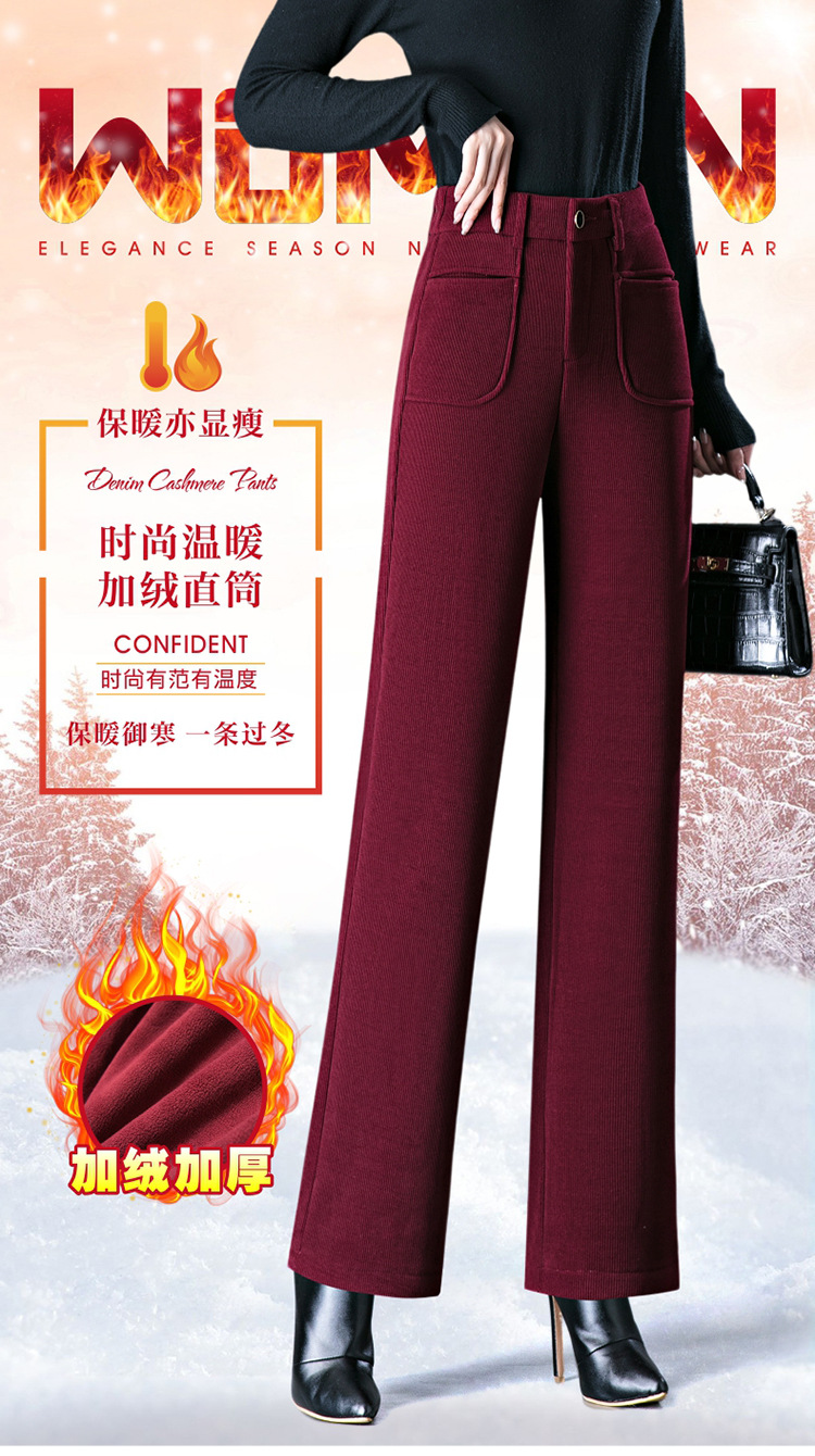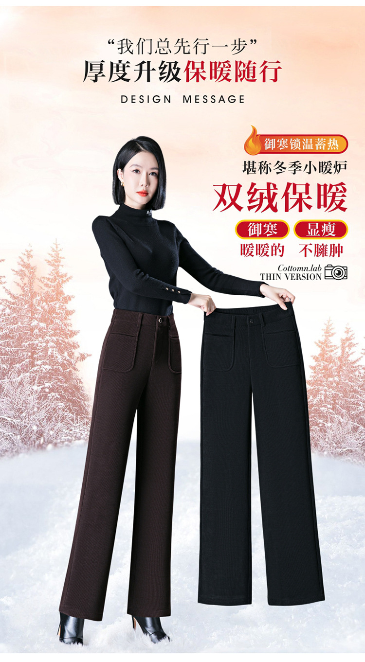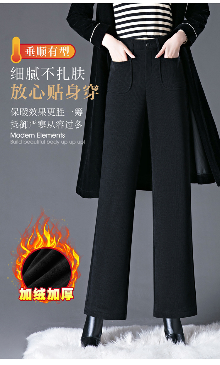 oujin velvet fleece wide-leg pants women's high waist slimming and fashionable middle-aged loose 2023 winter new drooping straight pants