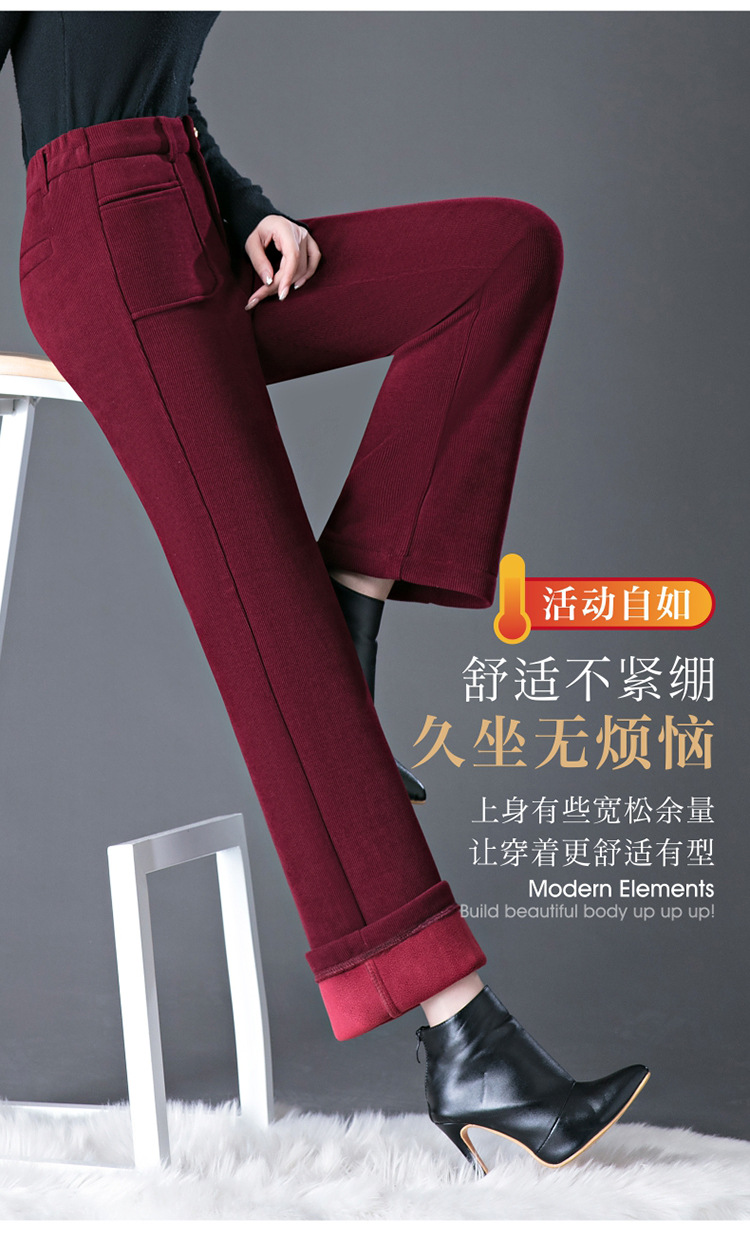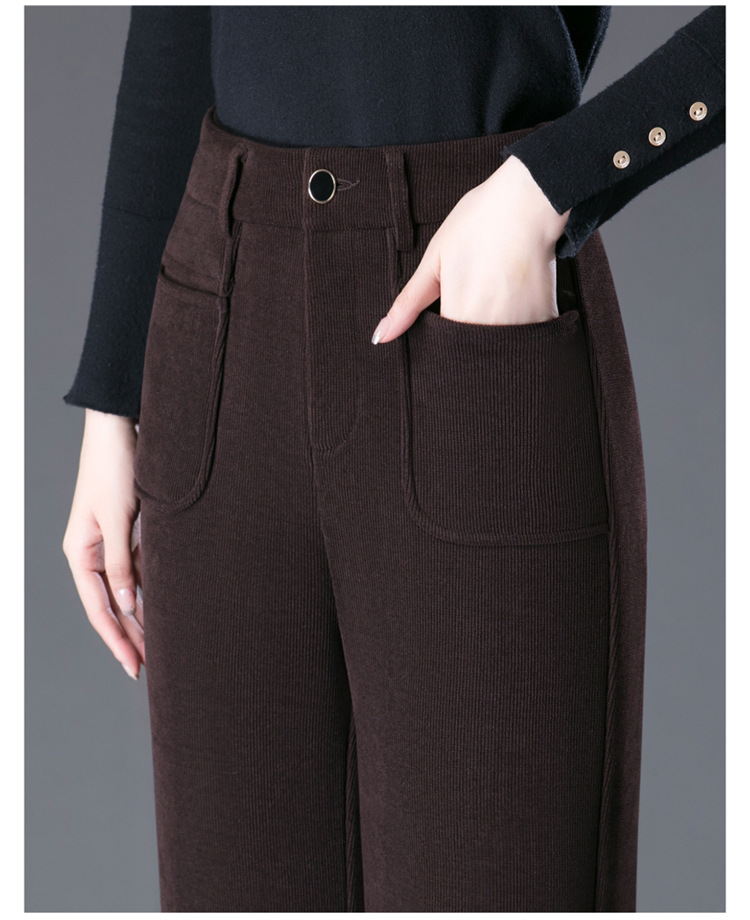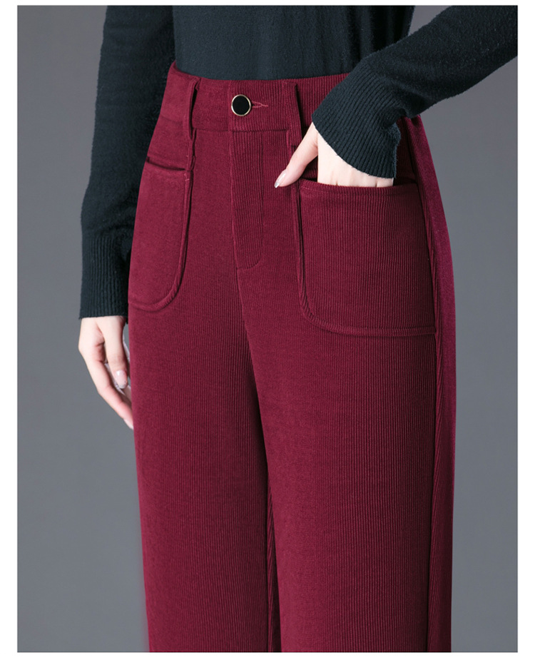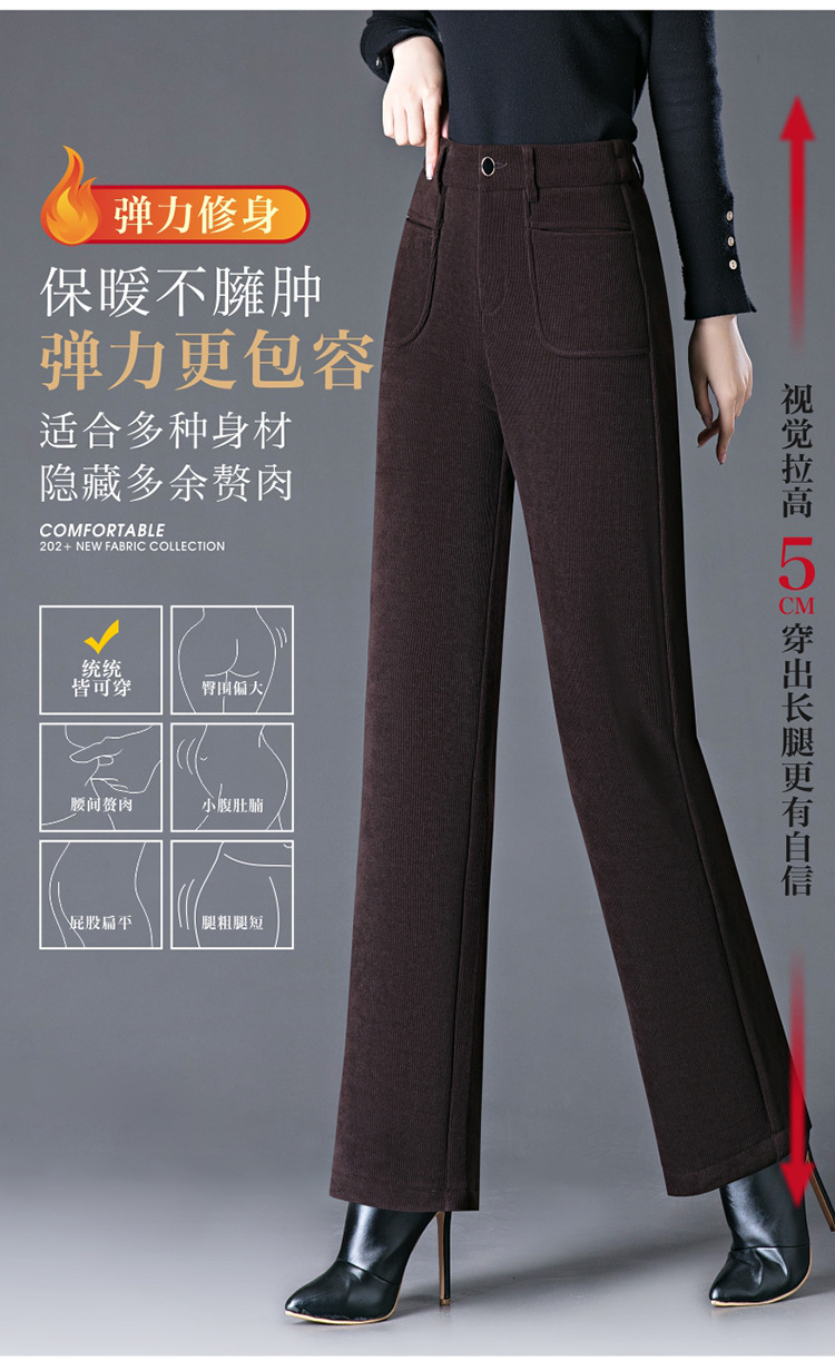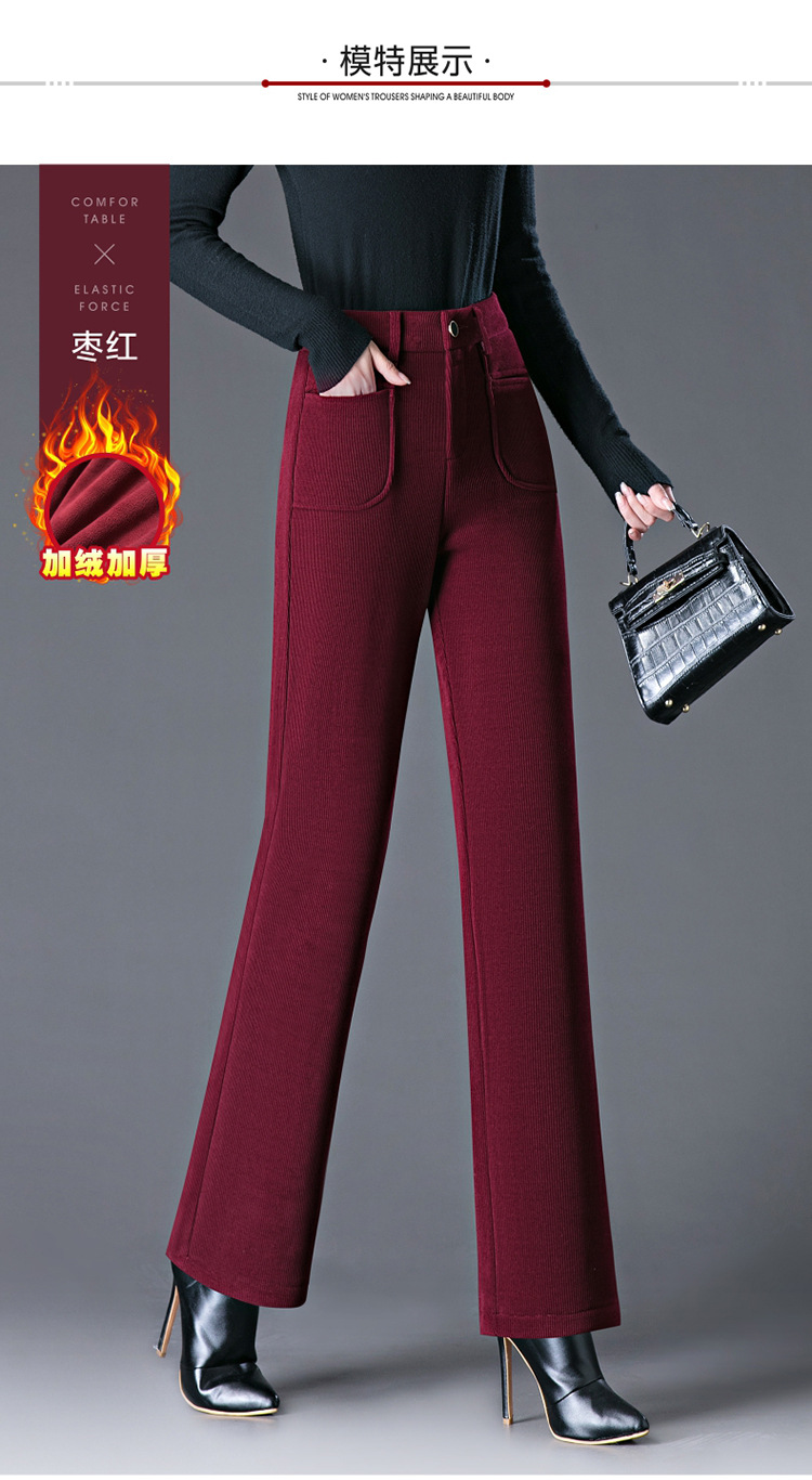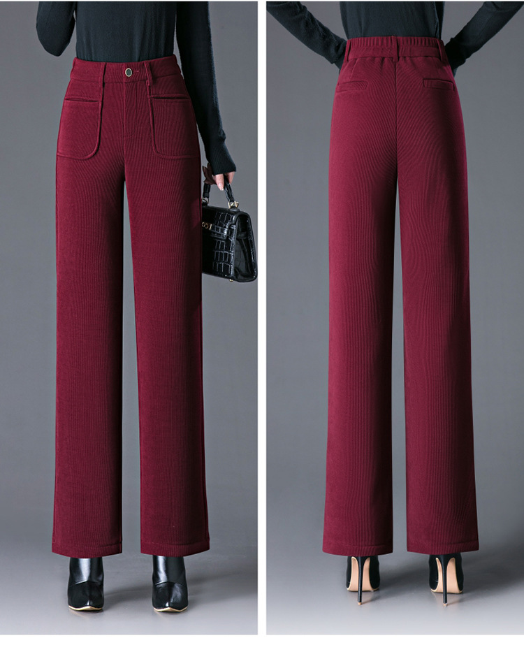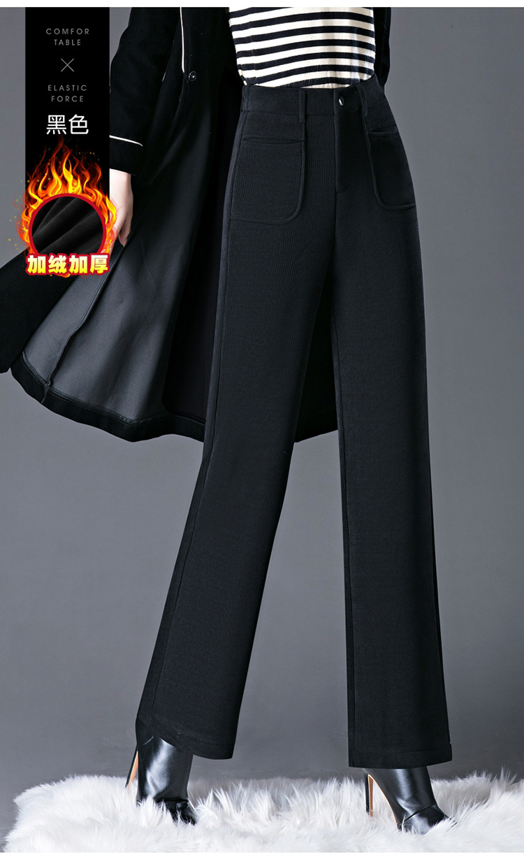 oujin velvet fleece wide-leg pants women's high waist slimming and fashionable middle-aged loose 2023 winter new drooping straight pants