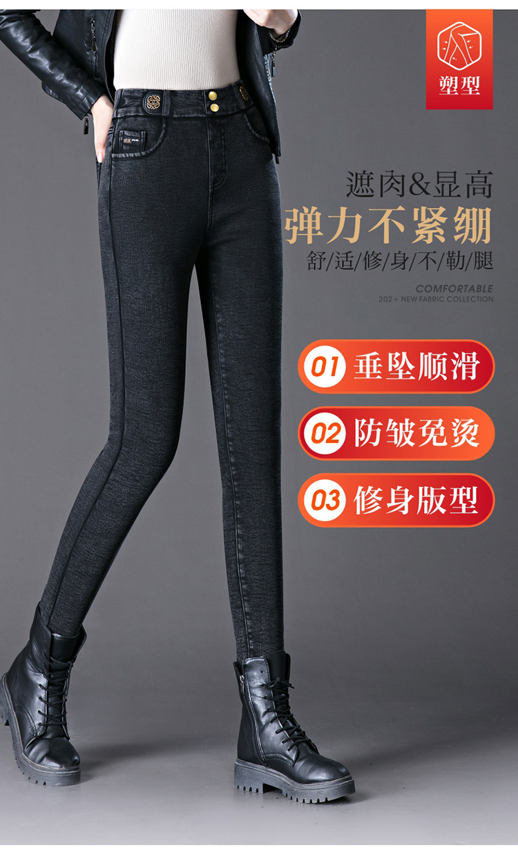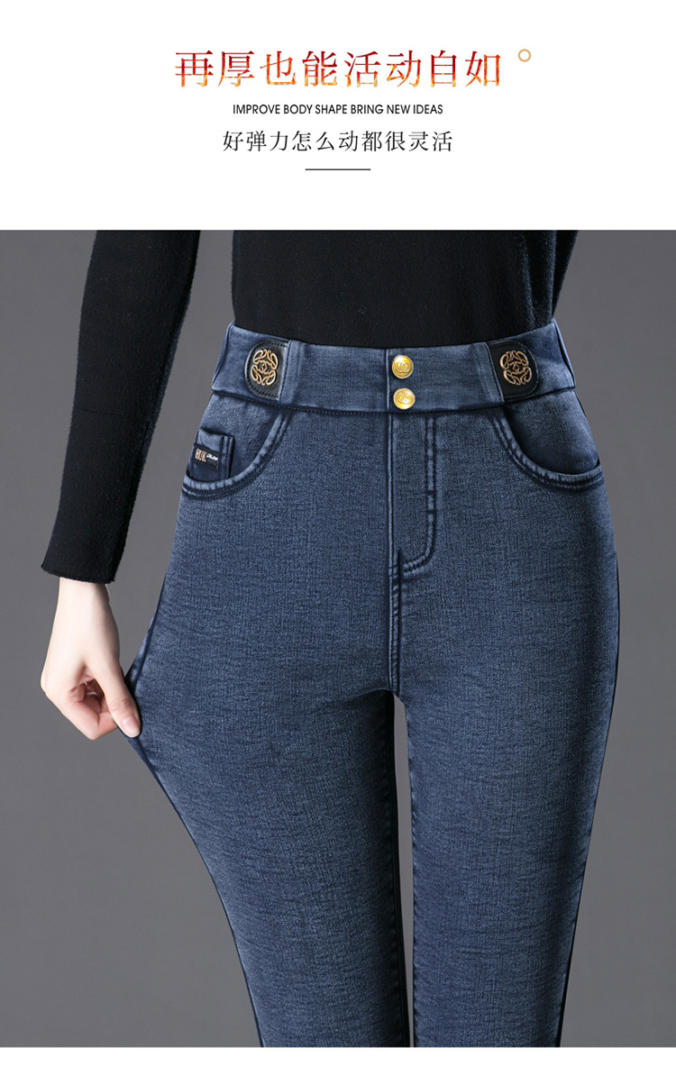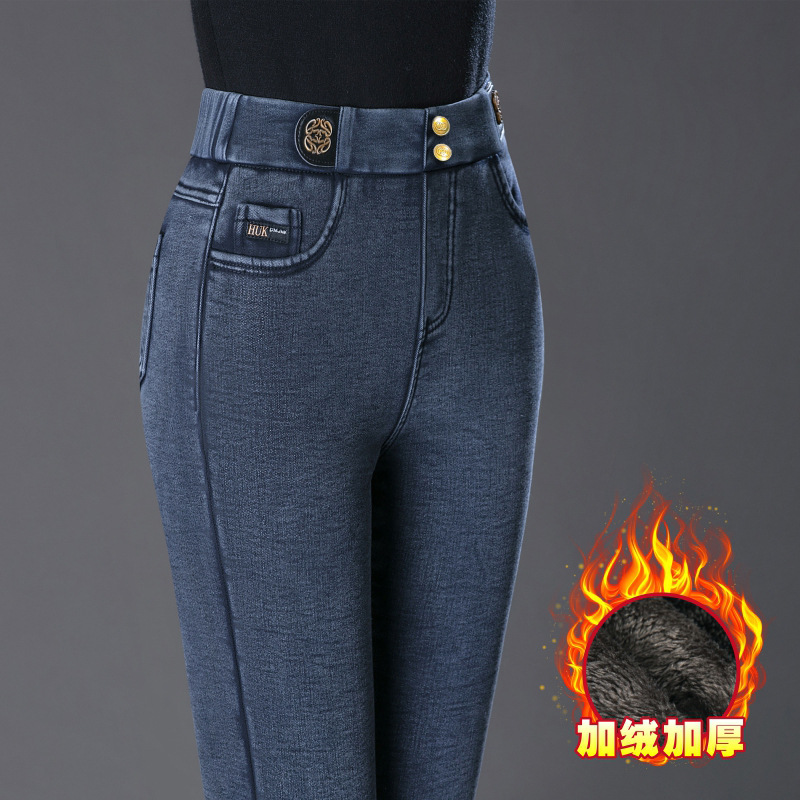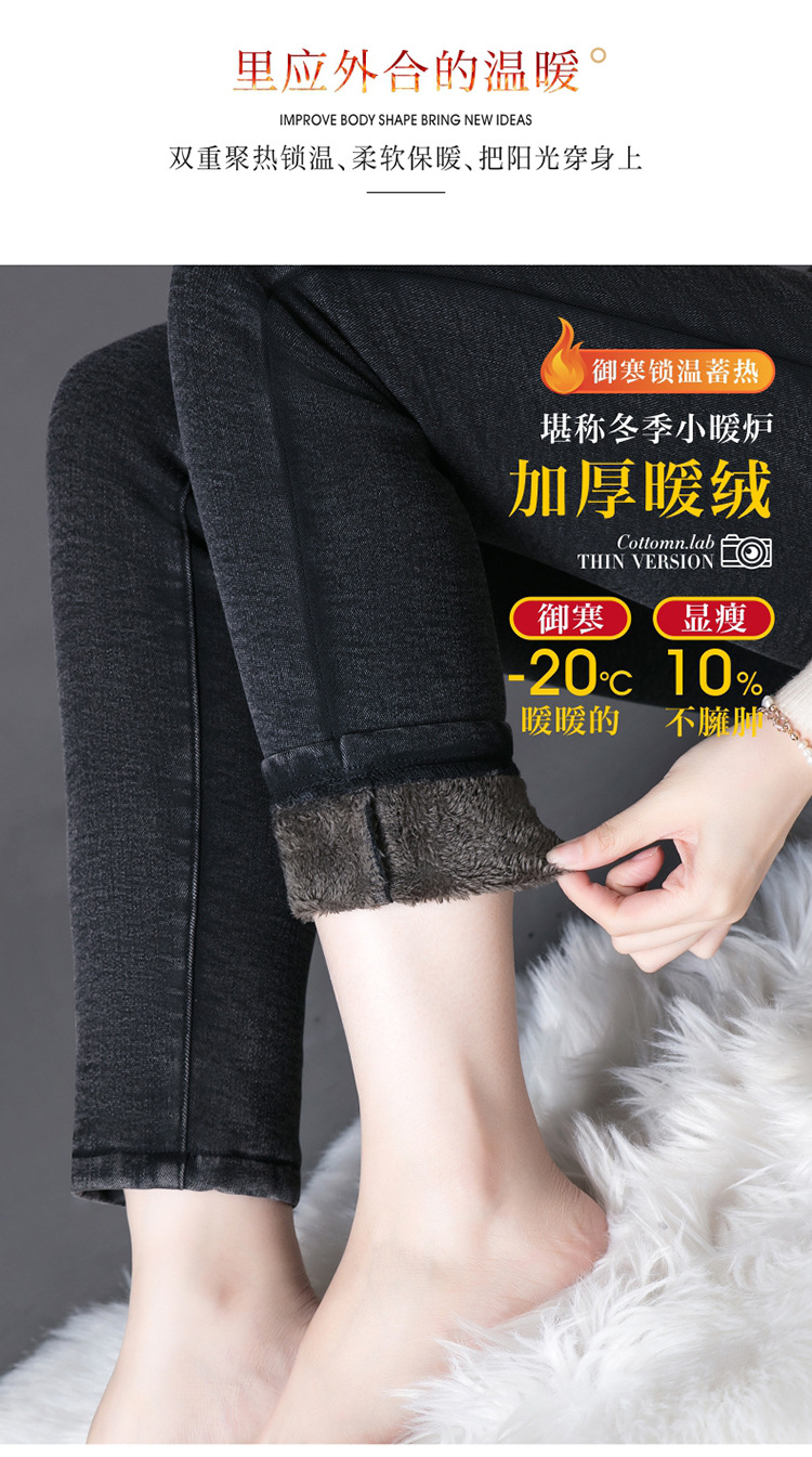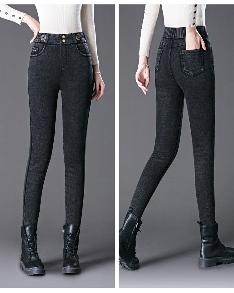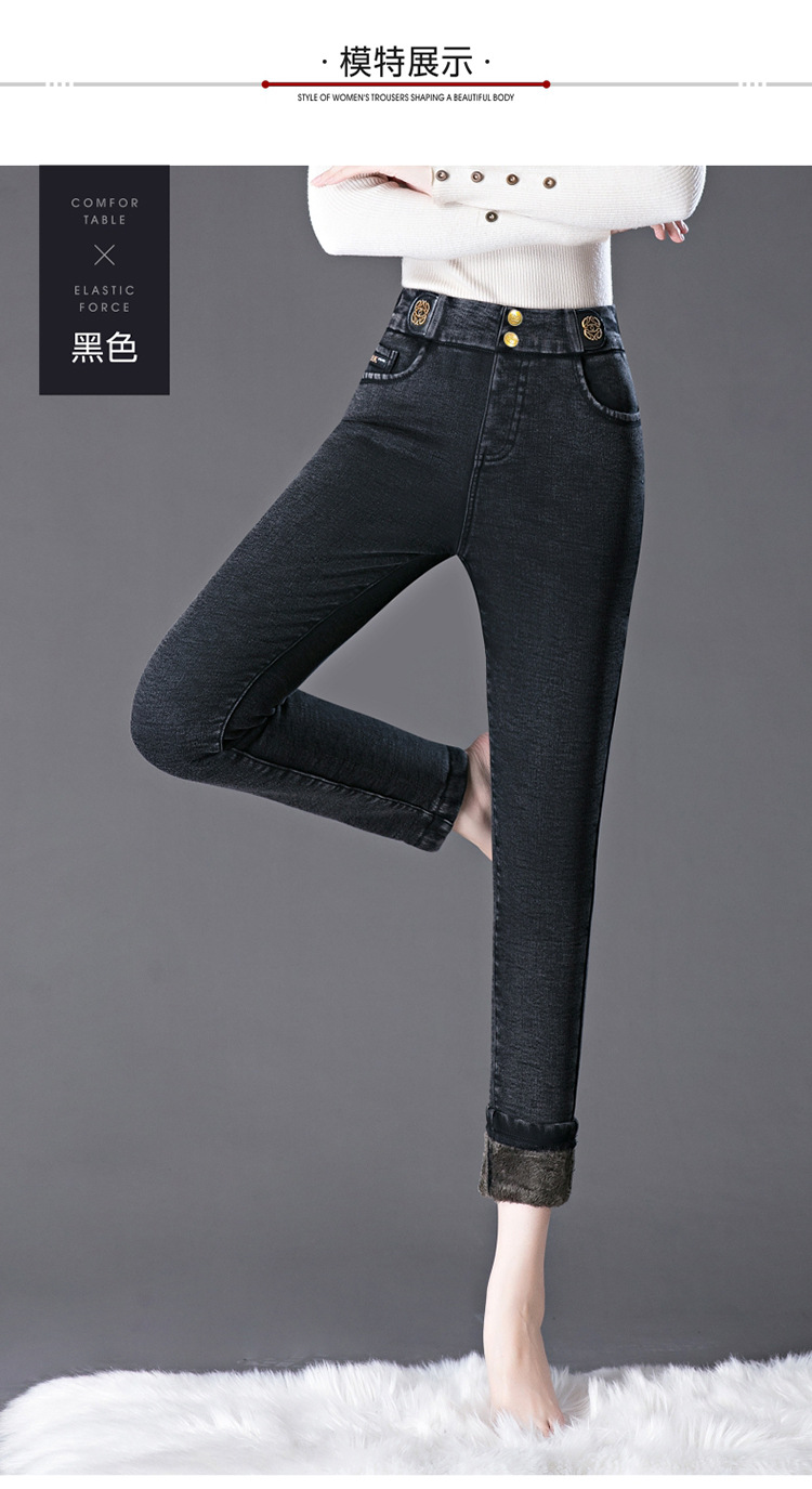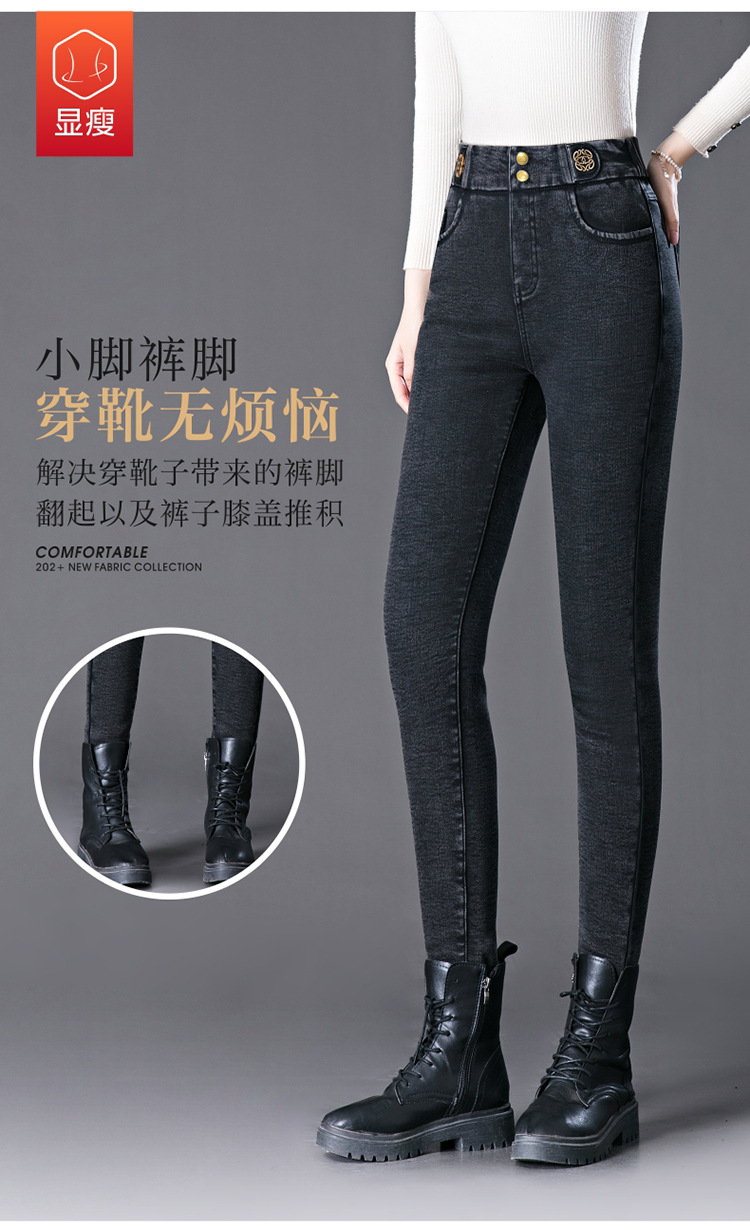 cotton elastic snowflake fleece padded jeans women's high waist elastic slim fit skinny pants slim fit slimming all-matching warm pencil pants