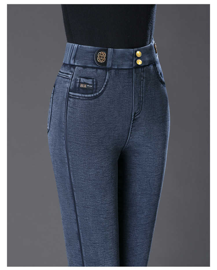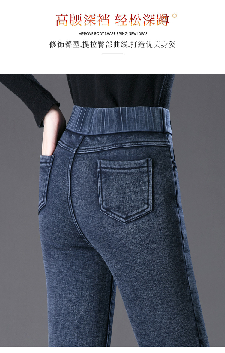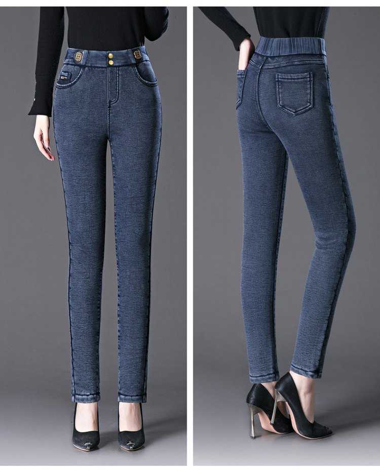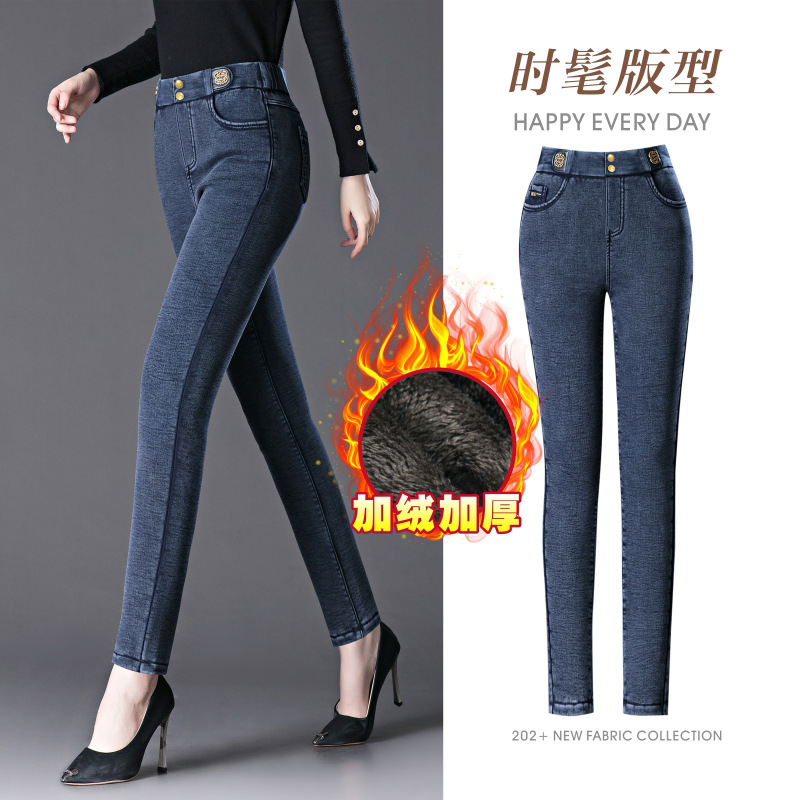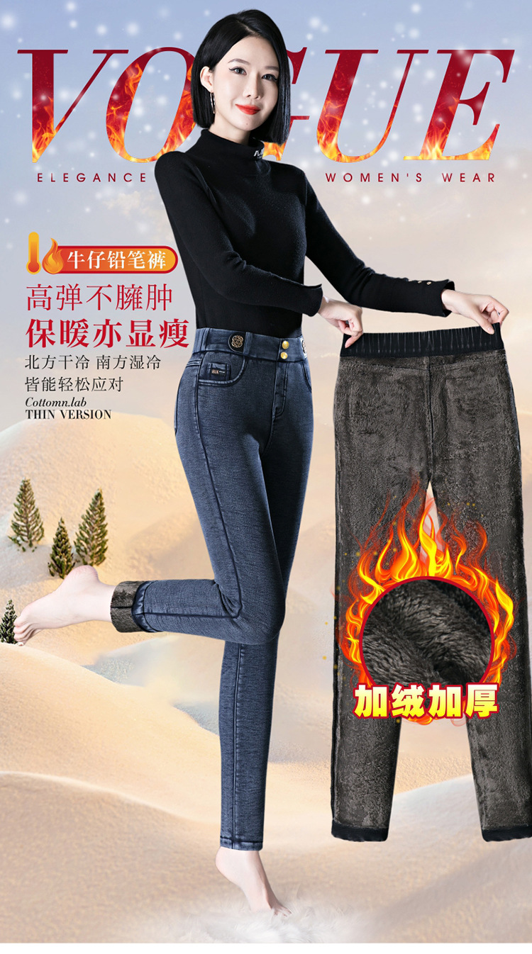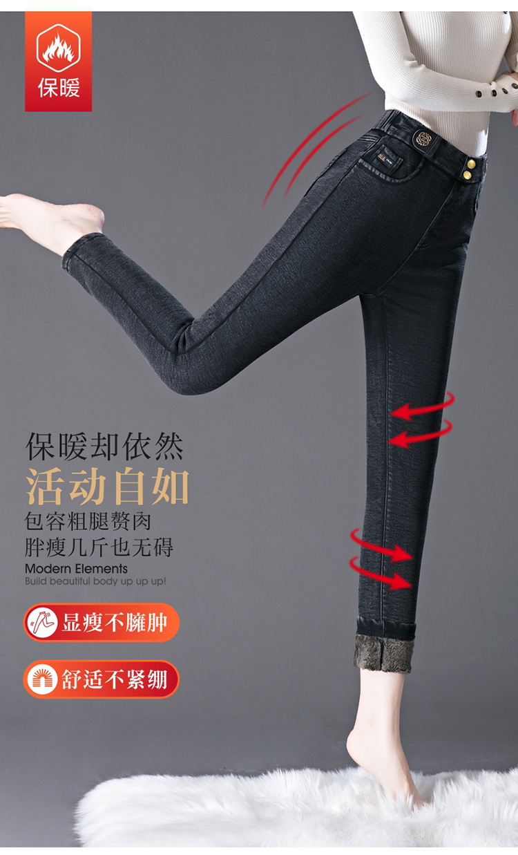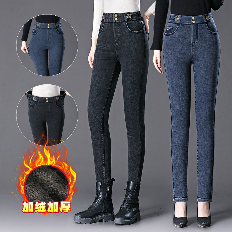 cotton elastic snowflake fleece padded jeans women's high waist elastic slim fit skinny pants slim fit slimming all-matching warm pencil pants
