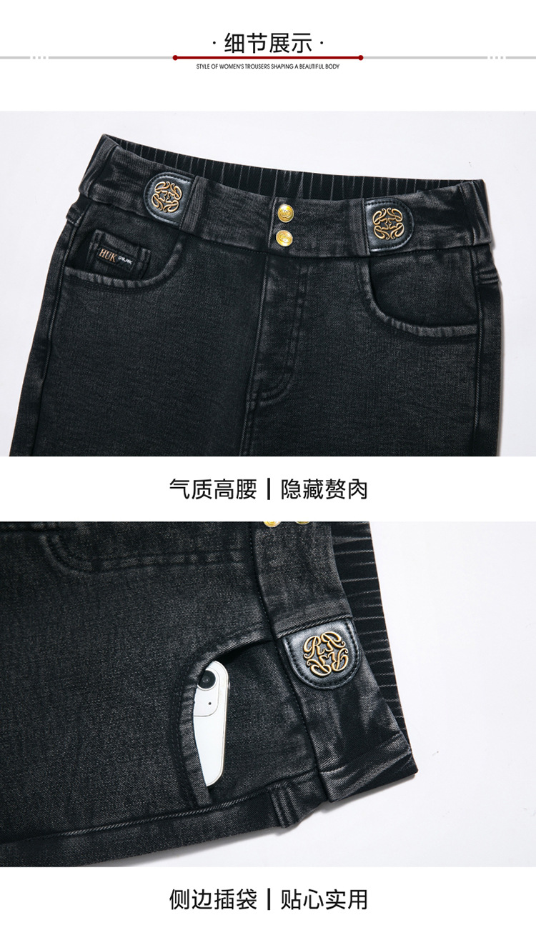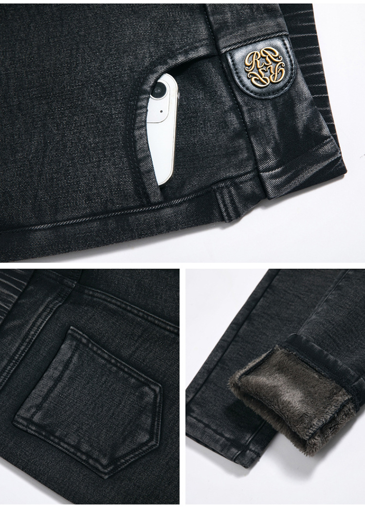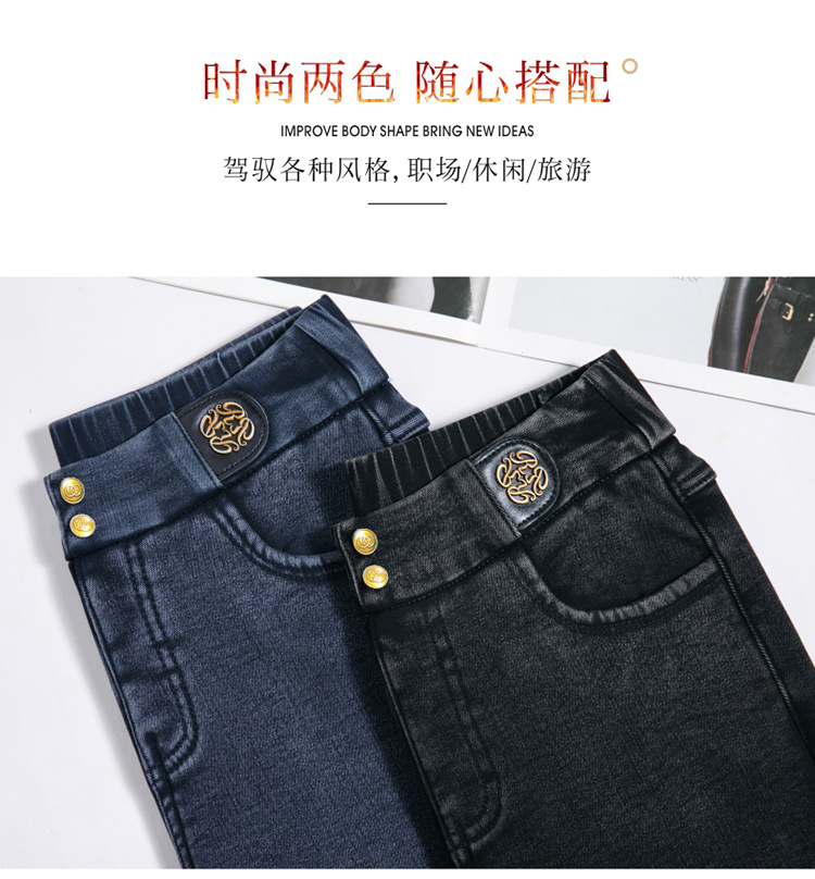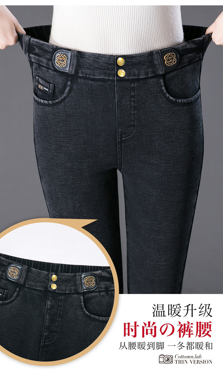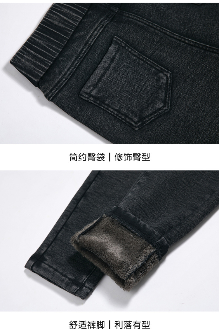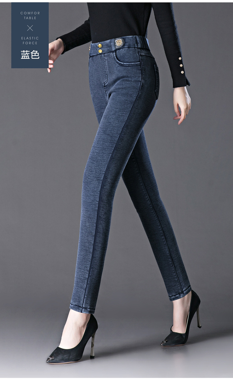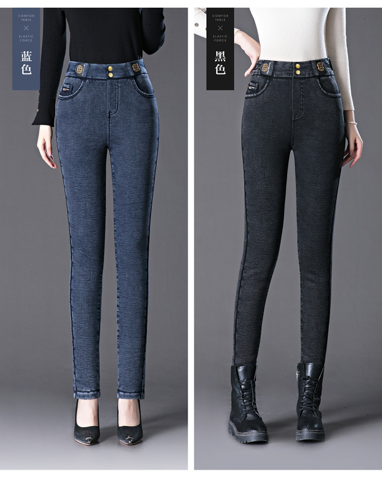 cotton elastic snowflake fleece padded jeans women's high waist elastic slim fit skinny pants slim fit slimming all-matching warm pencil pants