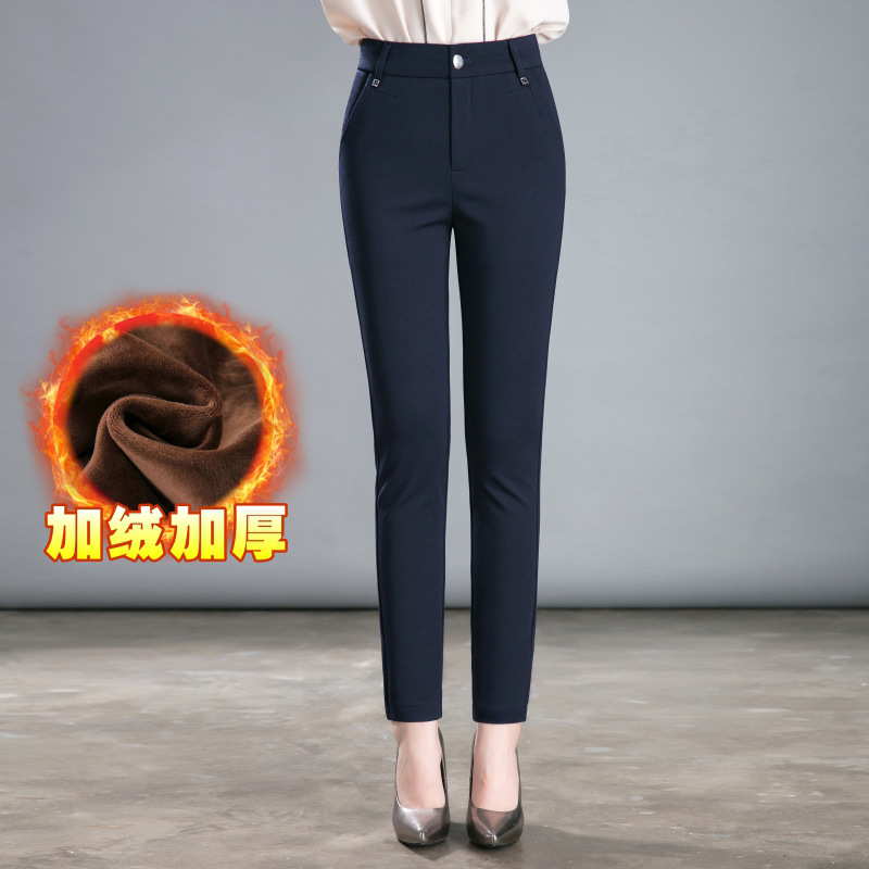 mom pants women's autumn and winter thickening high waist elastic straight casual trousers loose slimming middle-aged old fleece women's pants