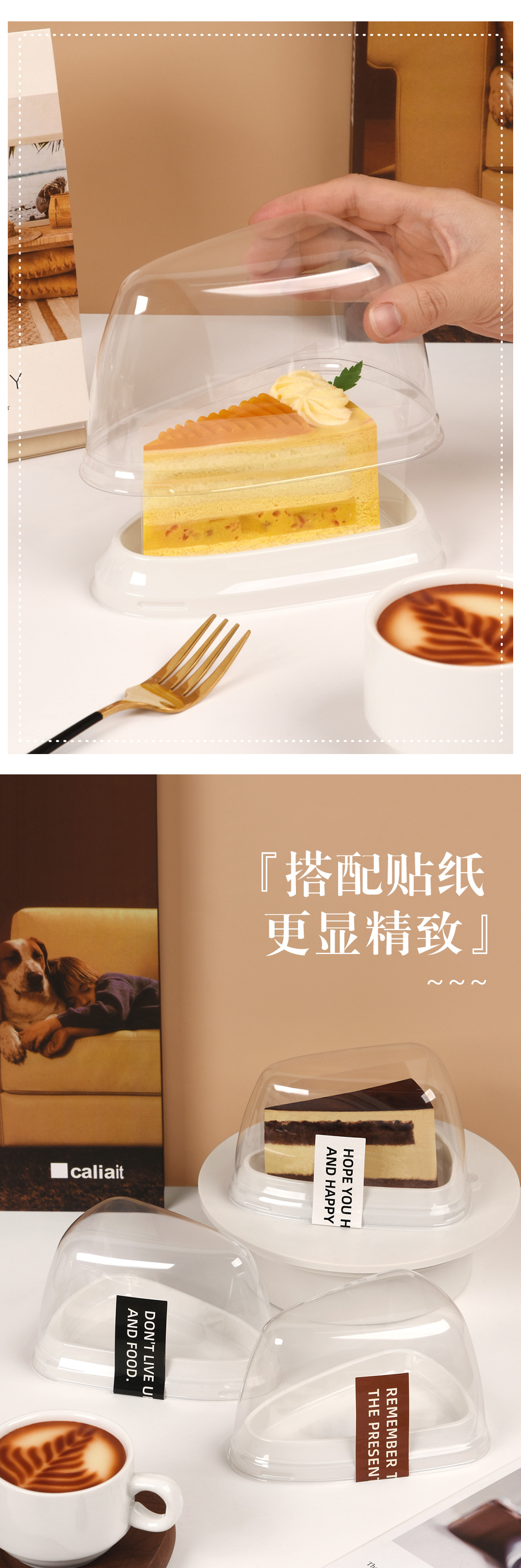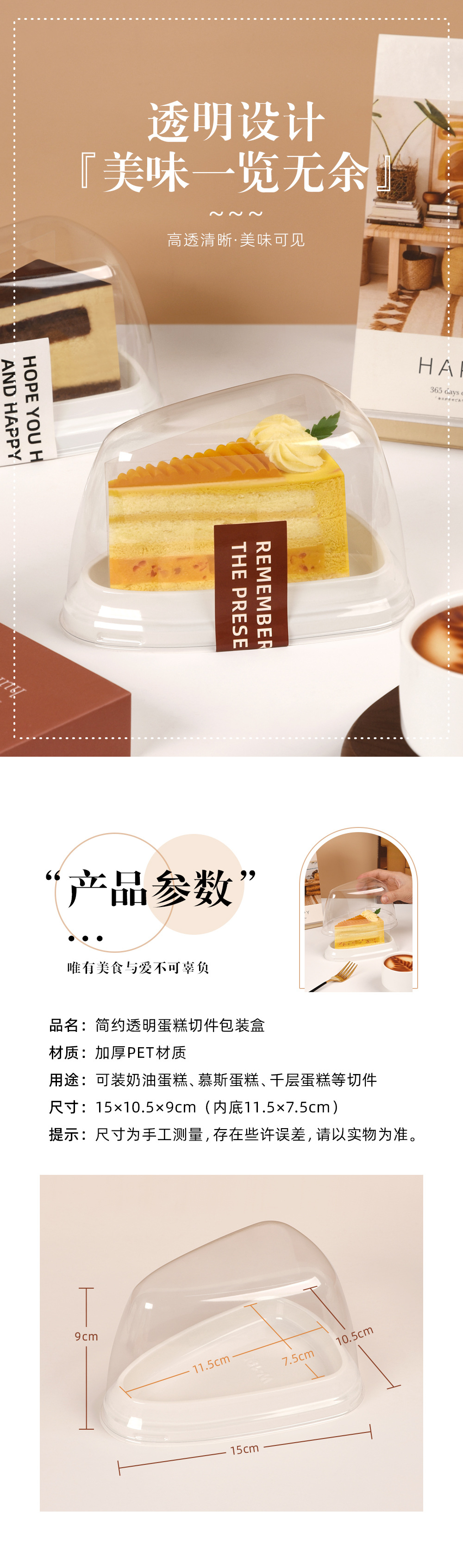 new chubby doodle triangle multi-layer cake cutter-piece box 8-inch mousse sub-package to-go box transparent disposable