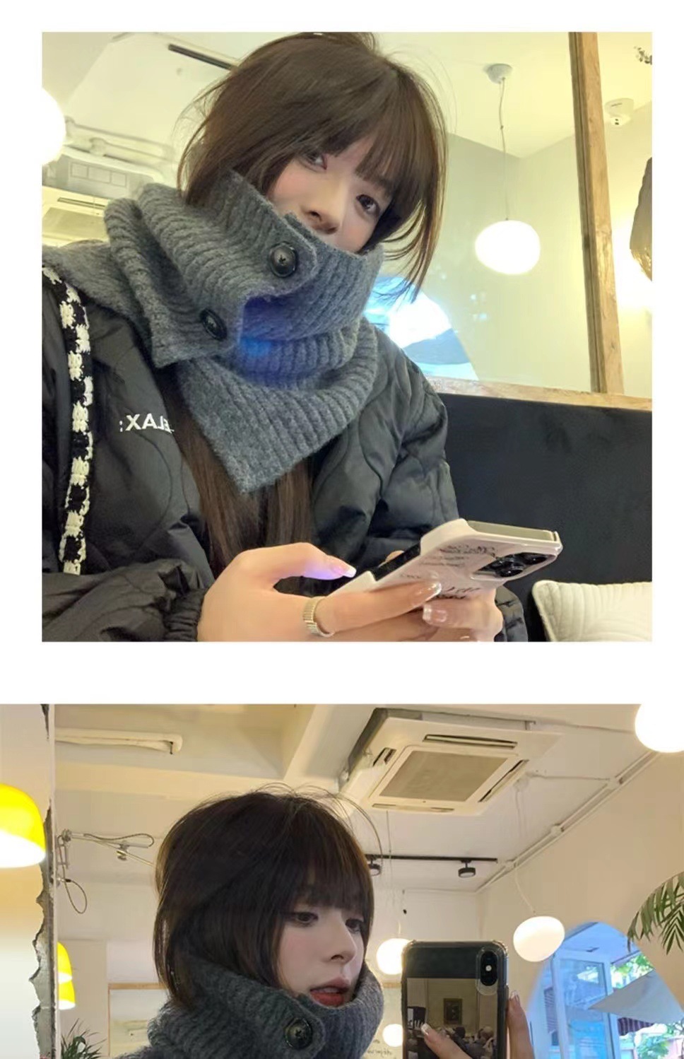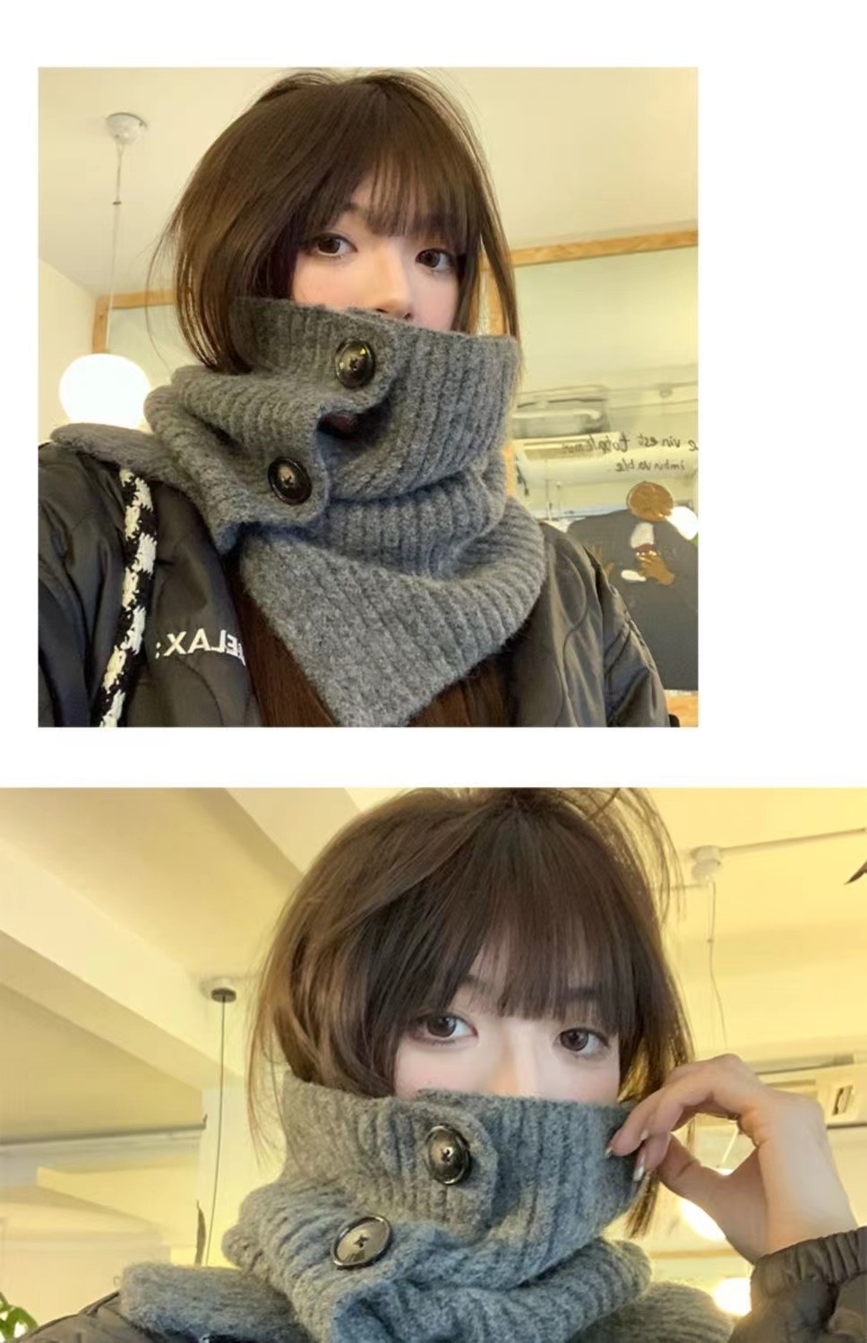 button scarf-gray