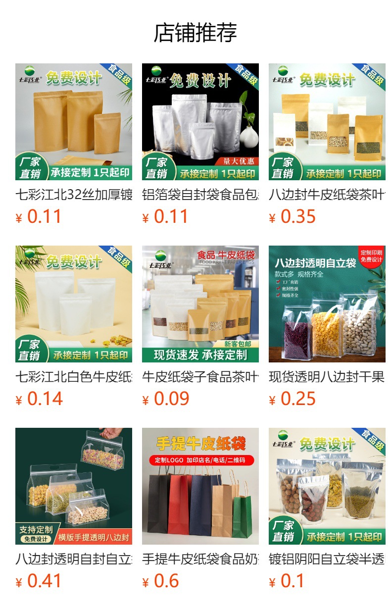 | specification: 28 silk frosted kraft paper bag; capacity: 10*15 + 3.5cm | CN¥ 0.11 | 999998 piece available |