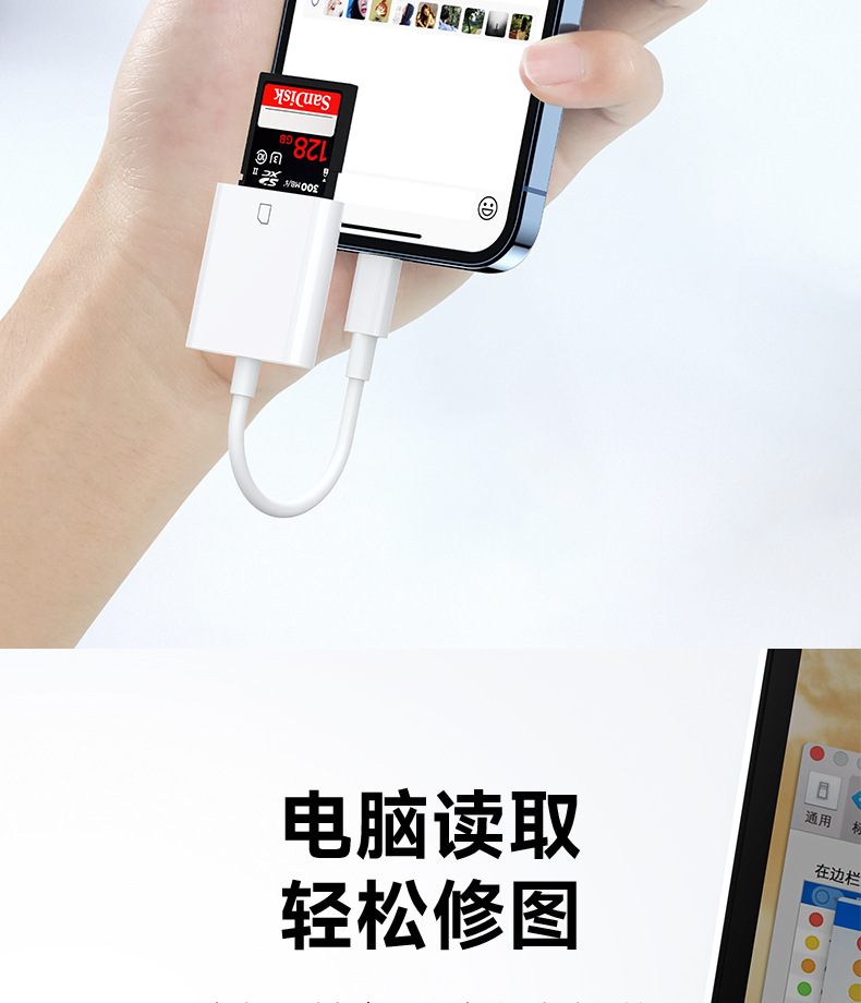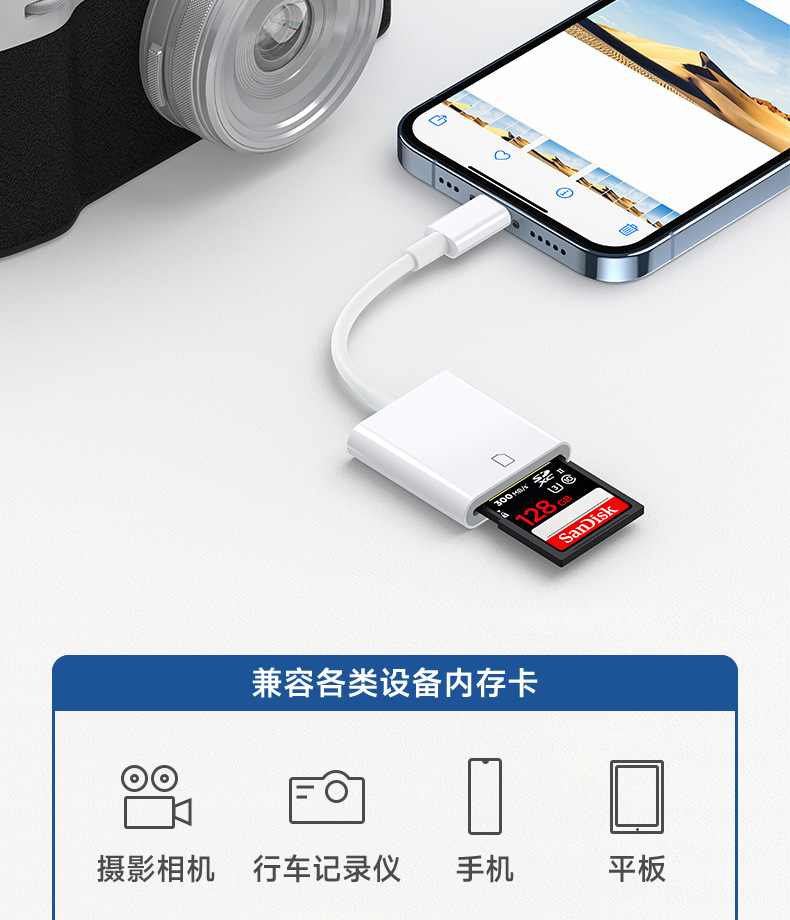 Applicable to Apple 15Lightning Android Type C Converter Mobile Phone Card Reader SD Card Camera Card OTG