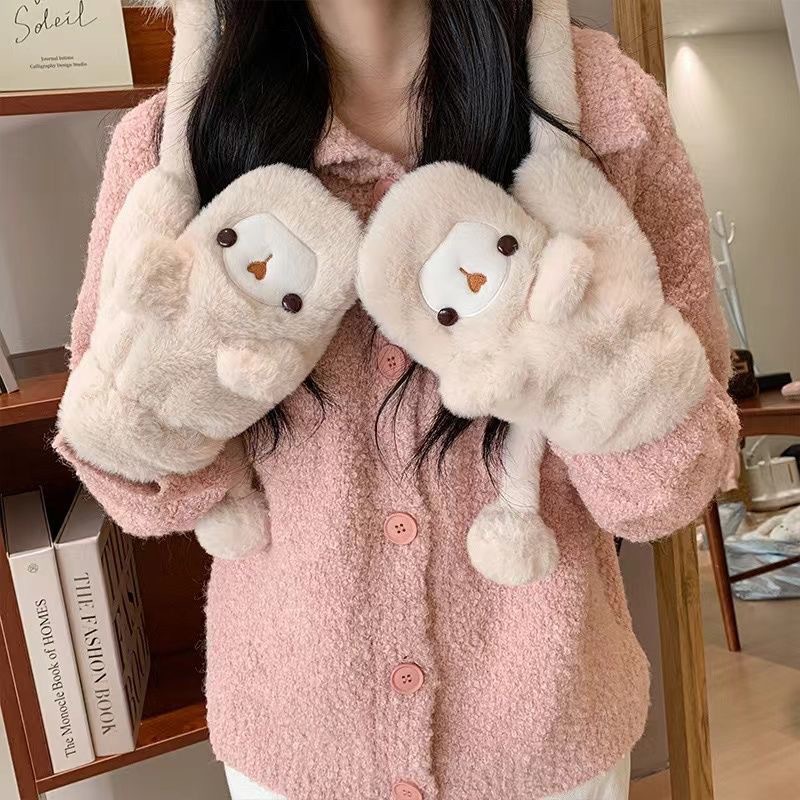 upgraded cartoon strap bear + gloves beige