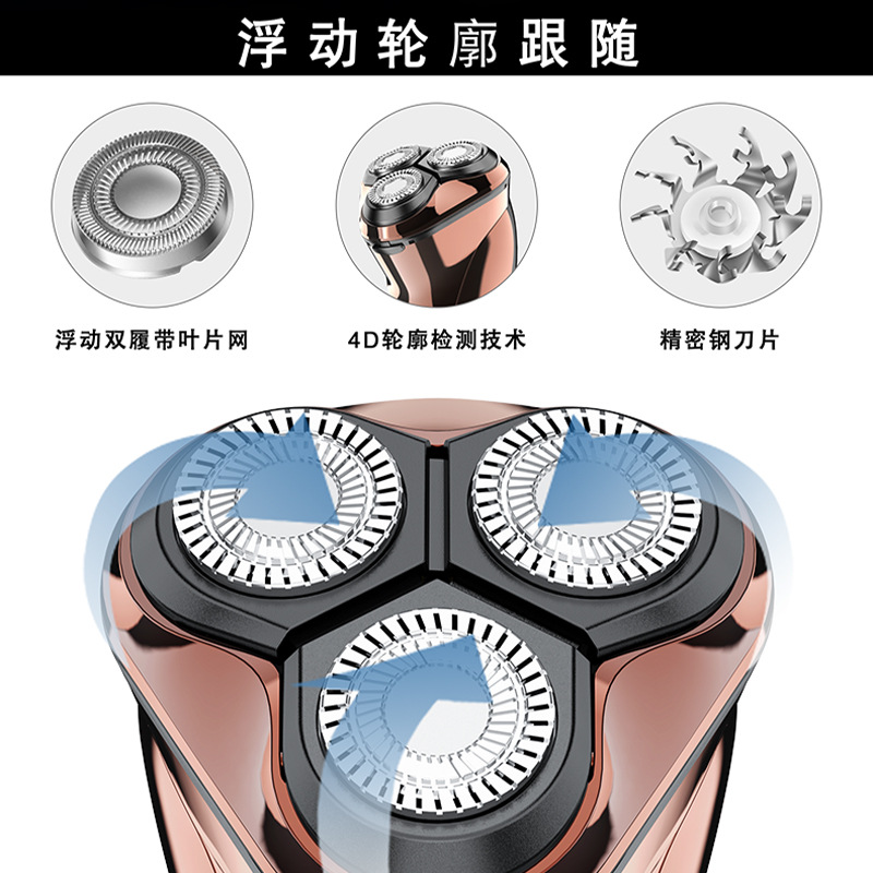 Product Overview: 1.5-hour fast charging, LED battery level display, dry and wet dual shaving, intelligent anti-pinching, three-blade head independent floating, dual-ring facial contour blade, blade head automatic grinding, fully waterproof, pop-up sideburn trimming blade, 6500 rpm frequency.