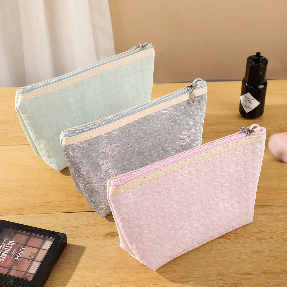 classic solid color woven pattern cosmetic bag korean style portable four-leaf one-word bag dry wet separation travel toiletry bag wholesale