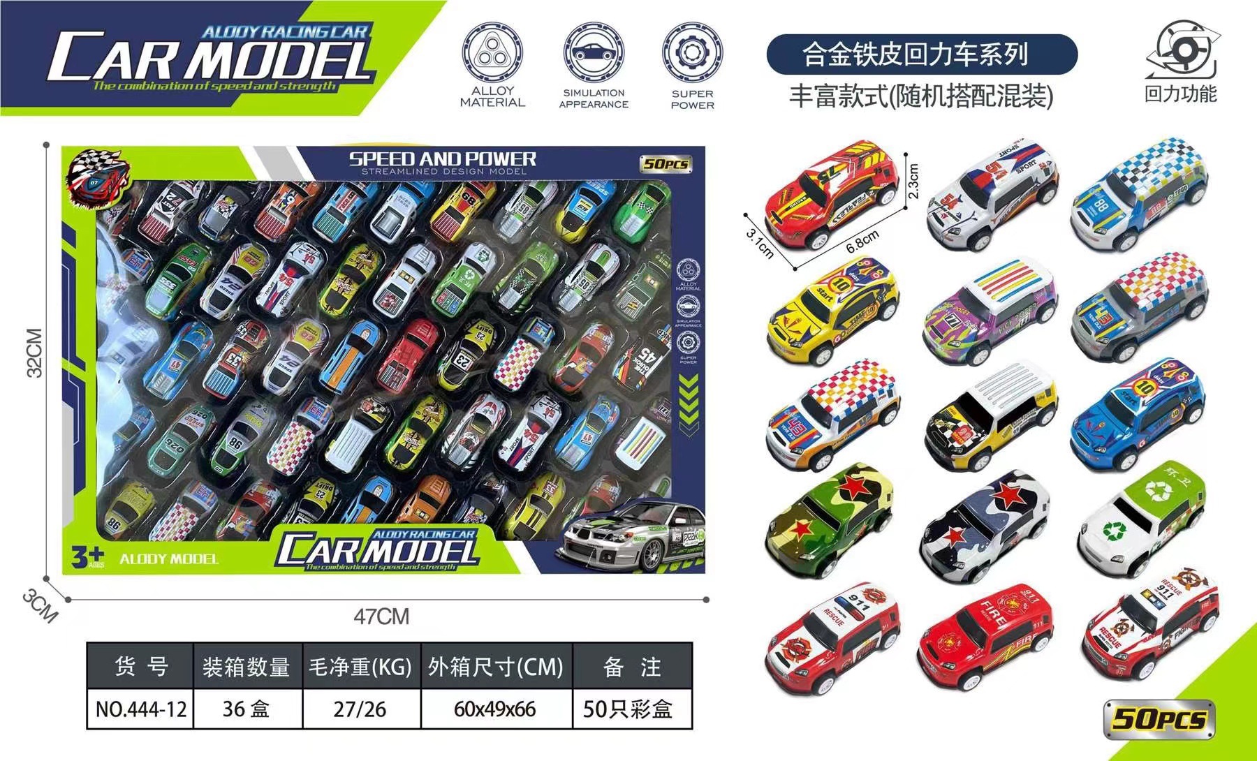 [50 pcs] color box warrior metal car