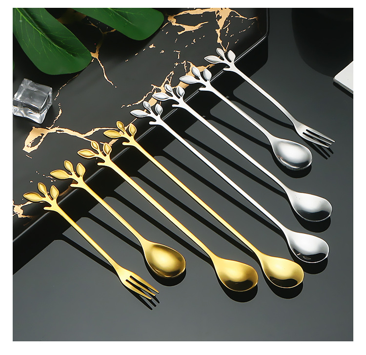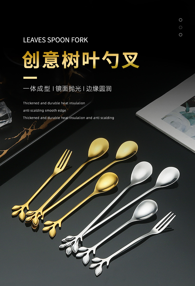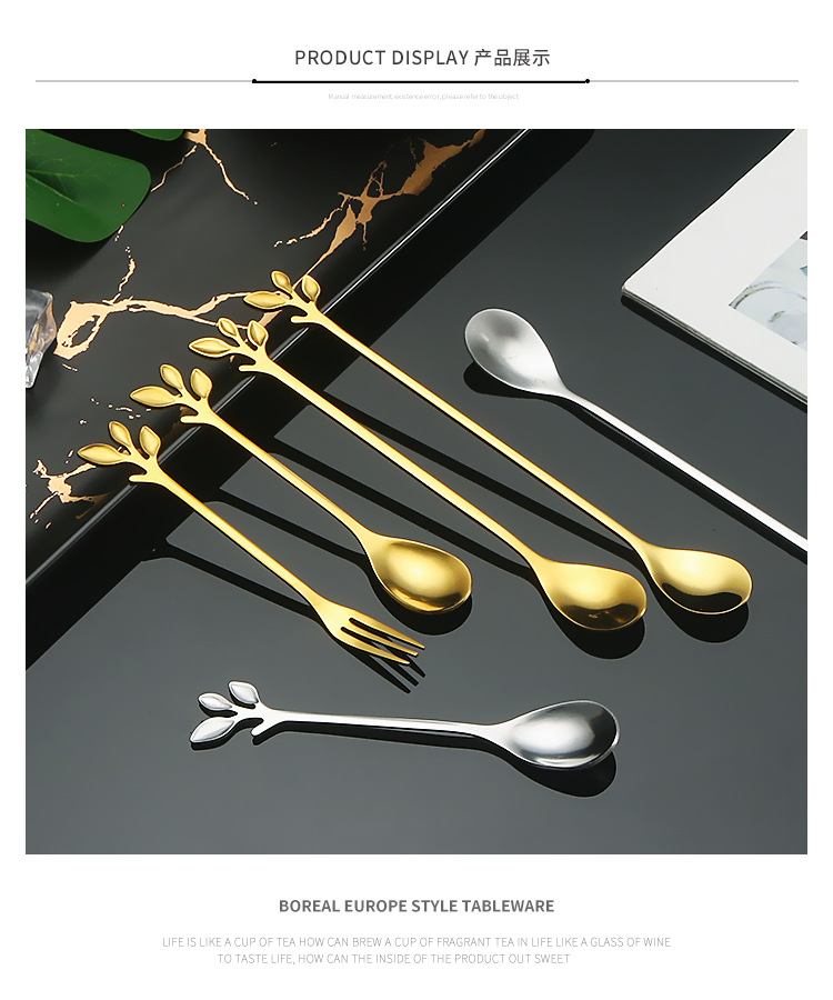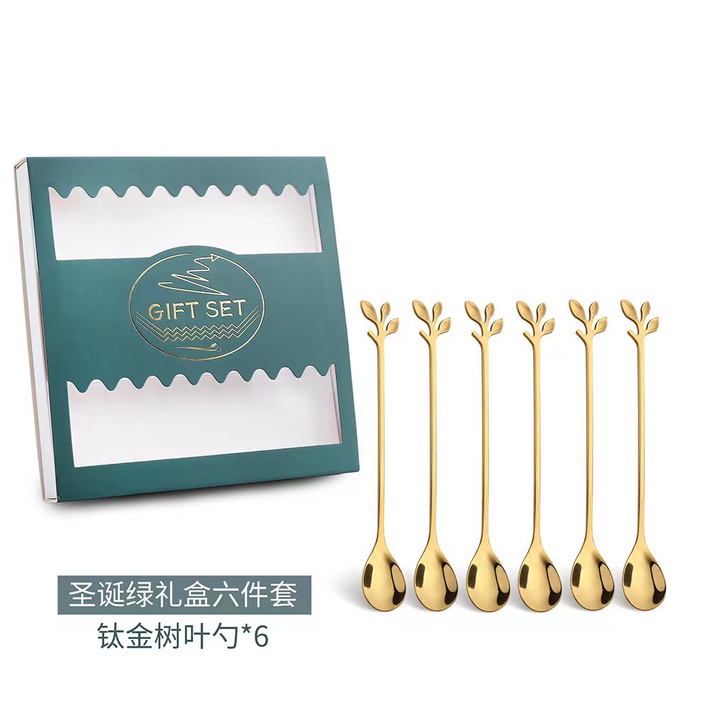 16cm golden leaf spoon-[6-piece set]]