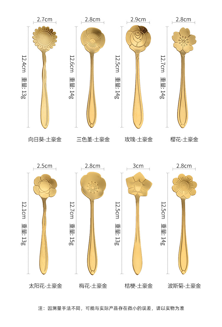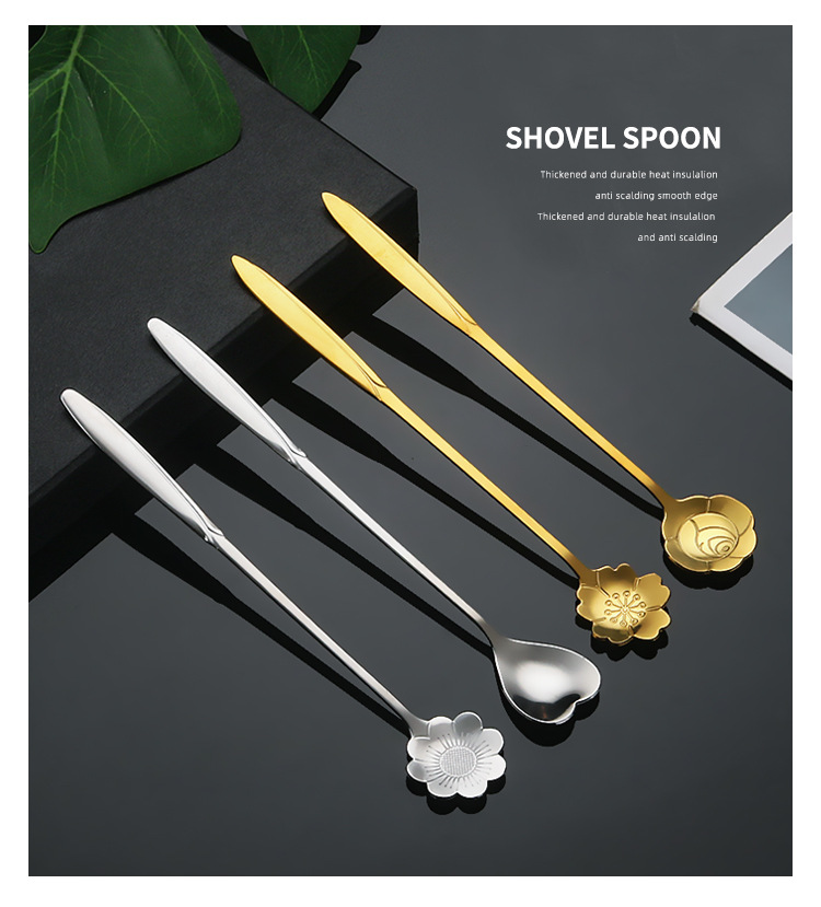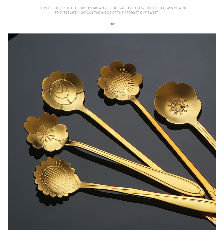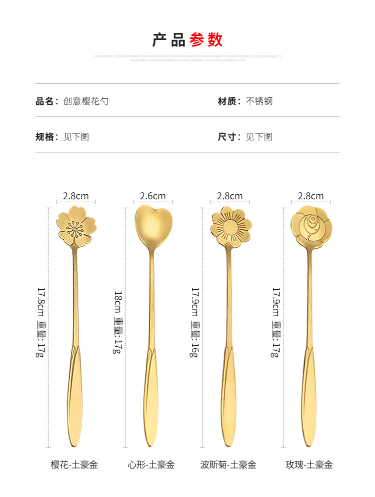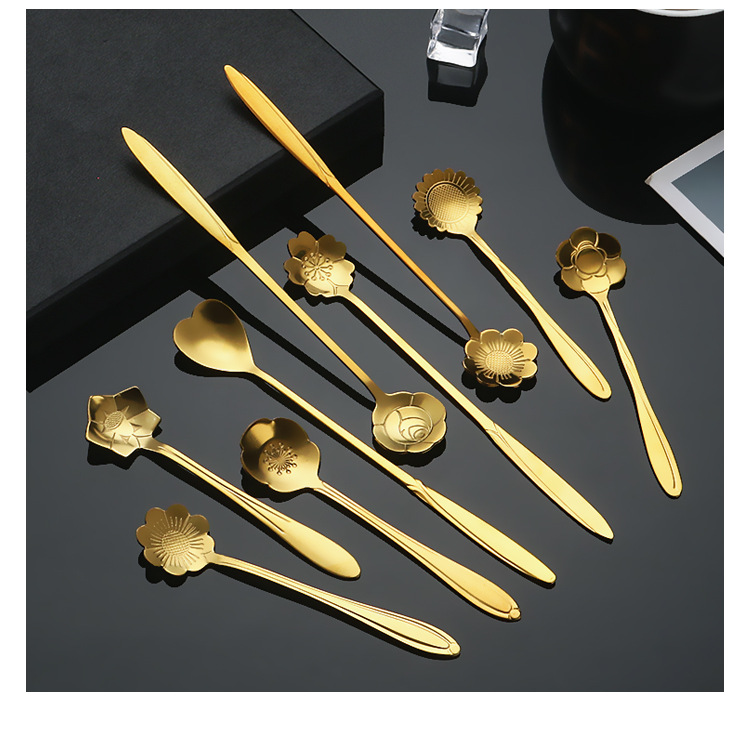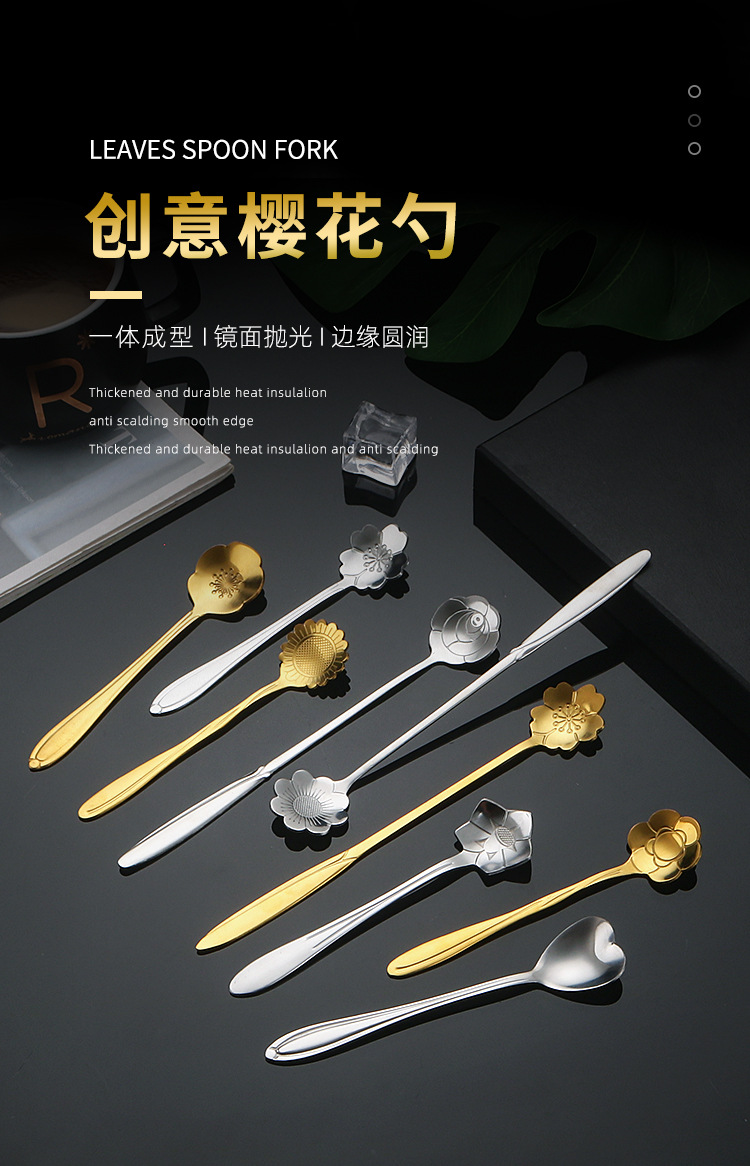 stainless steel spoon creative cherry blossom spoon golden wedding flower spoon mug stirring spoon dessert ice spoon coffee spoon