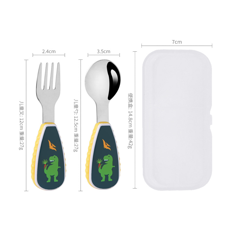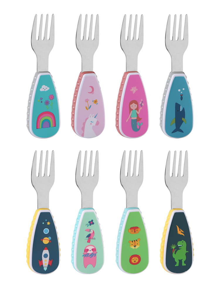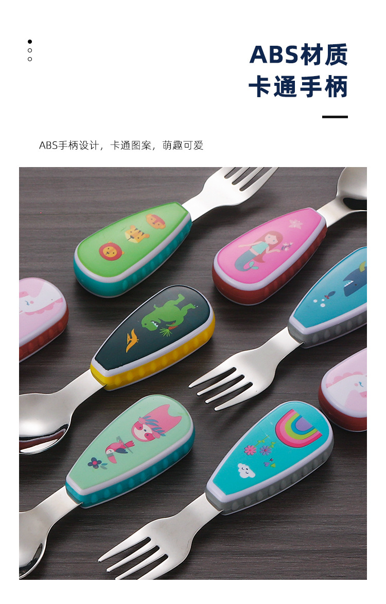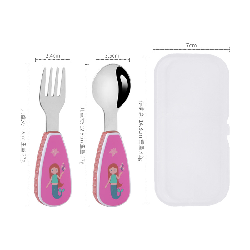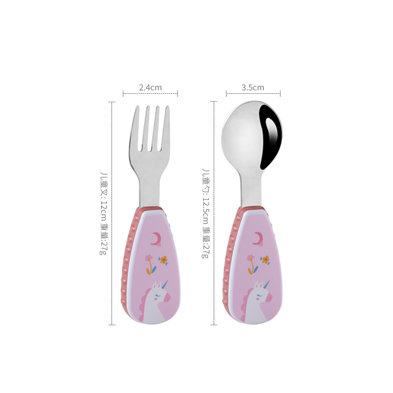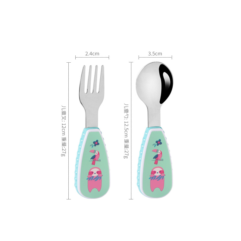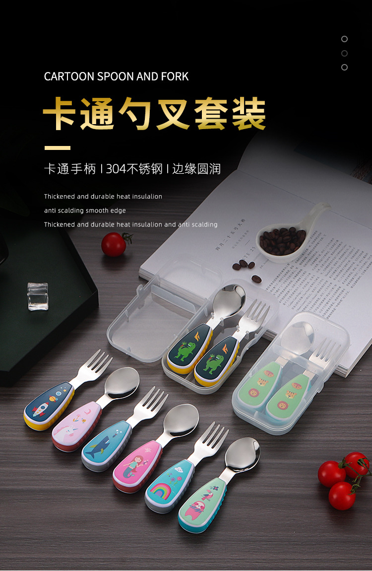304 creative stainless steel cartoon children spoon fork baby short handle complementary food training fork spoon portable tableware suit