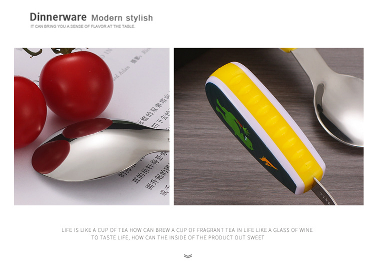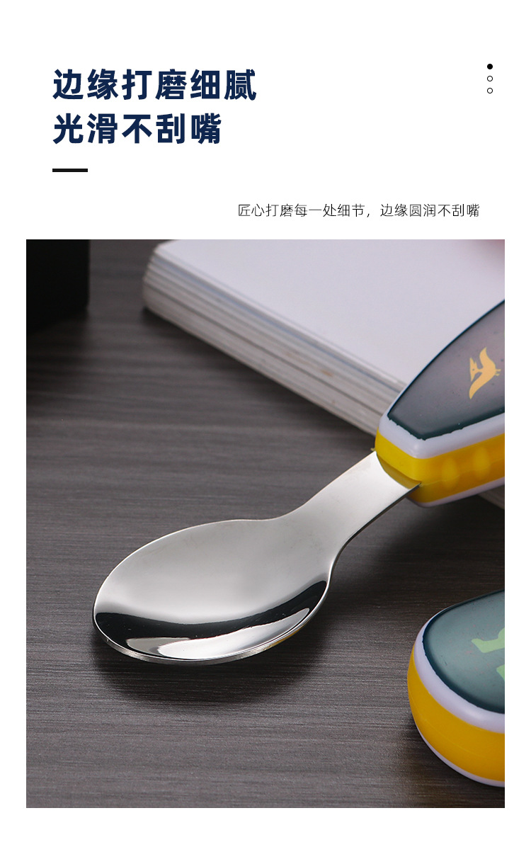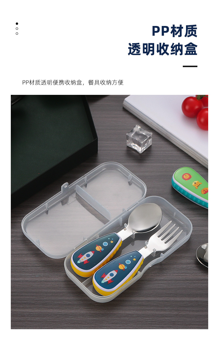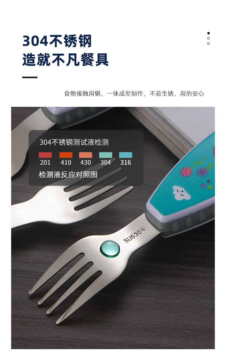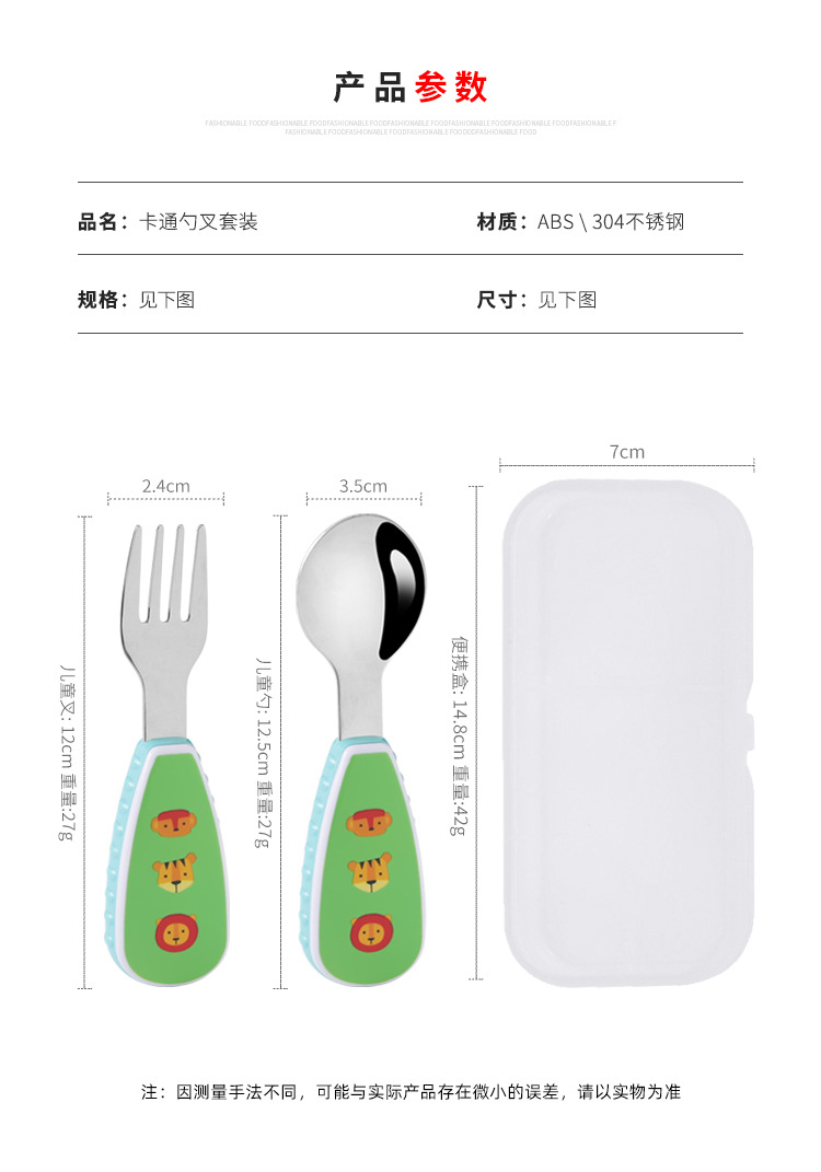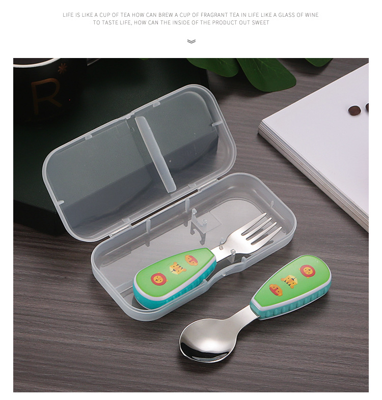 304 creative stainless steel cartoon children spoon fork baby short handle complementary food training fork spoon portable tableware suit