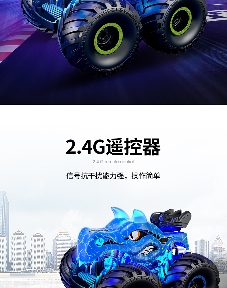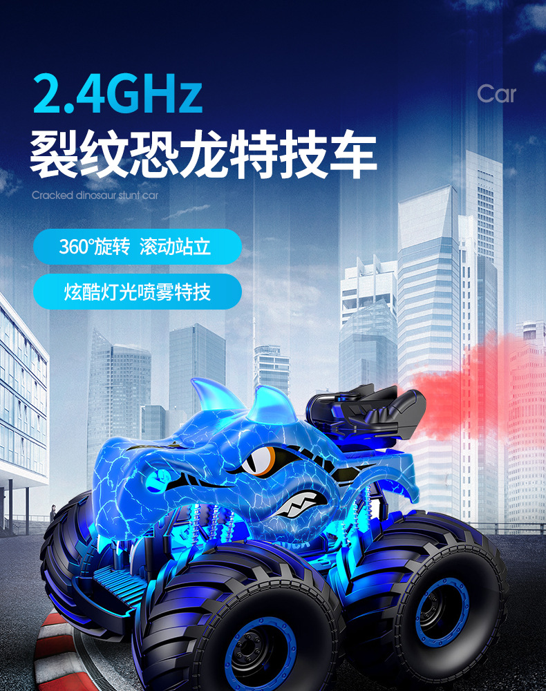 blue-remote control dinosaur car