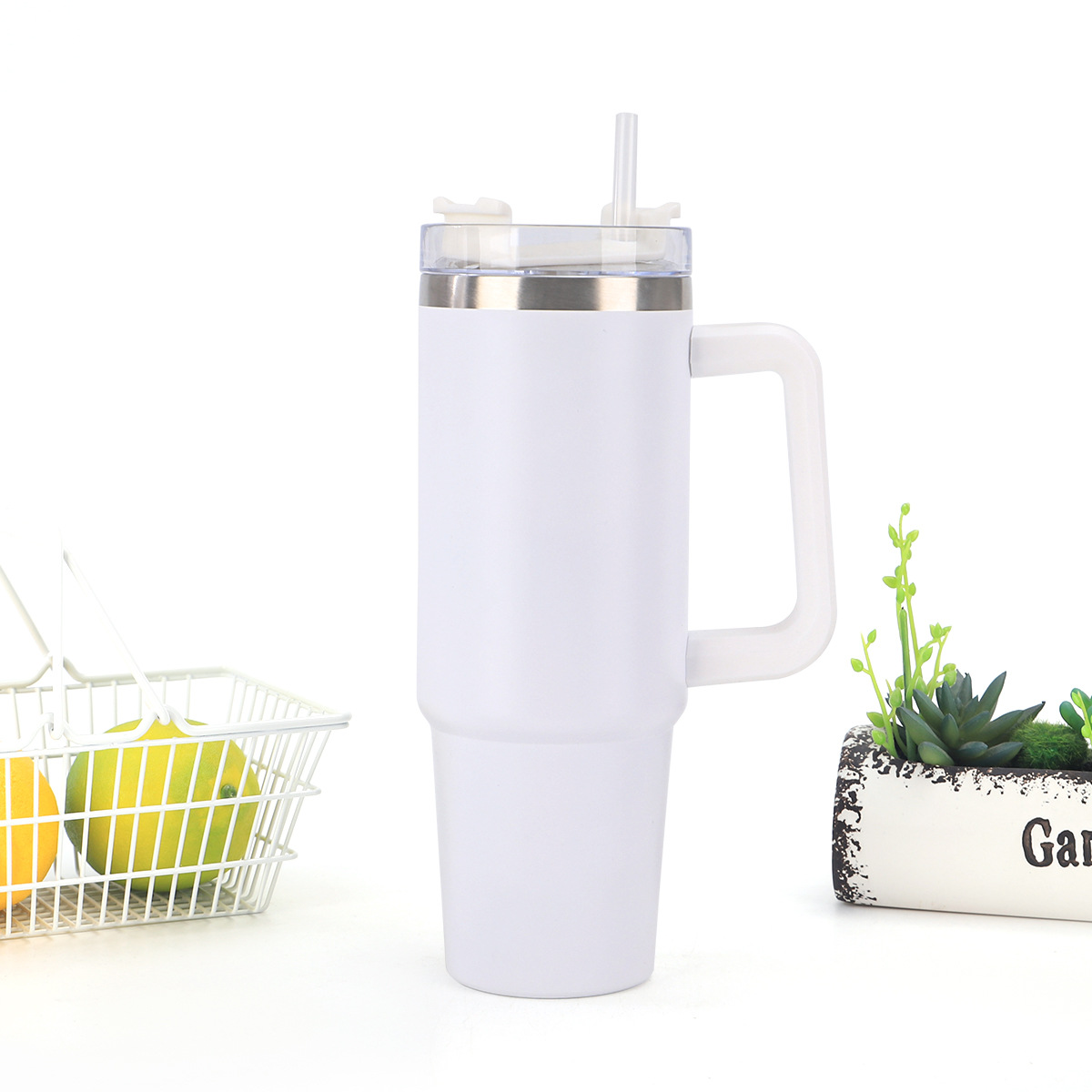 cross-border generation 40oz handle cup 304 stainless steel straw thermal insulation cup large capacity cold insulation large ice cup