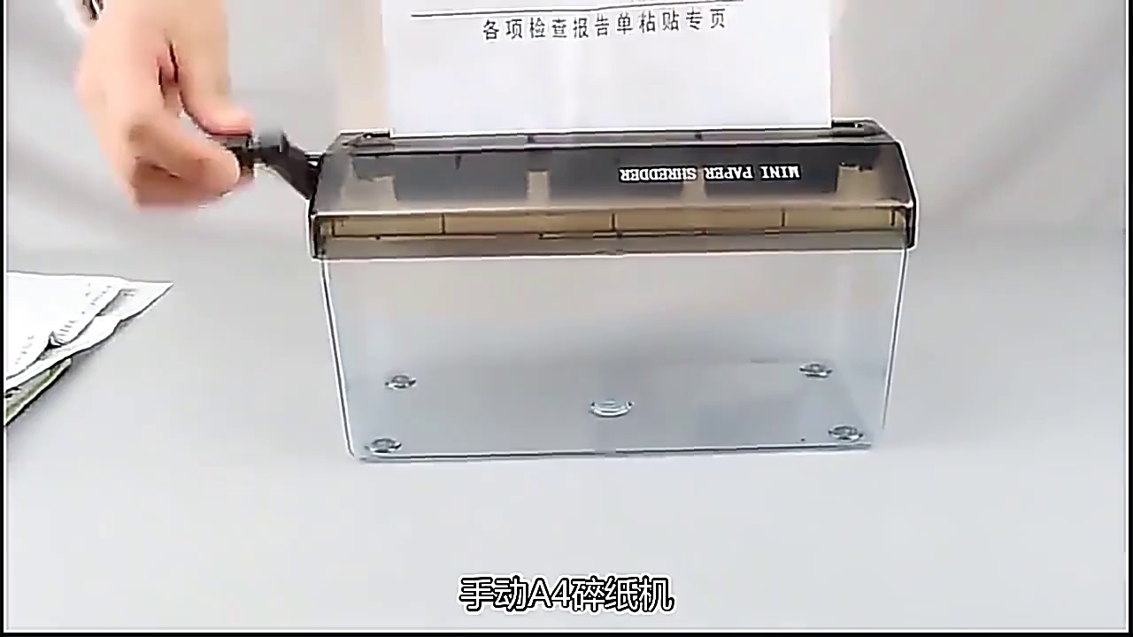 Hand-crank shredder. Ideal for the destruction of counter documents in financial and securities systems, ensuring confidentiality. It is compact and has a beautiful design. It is compact and has a beautiful design, and is easy to use.