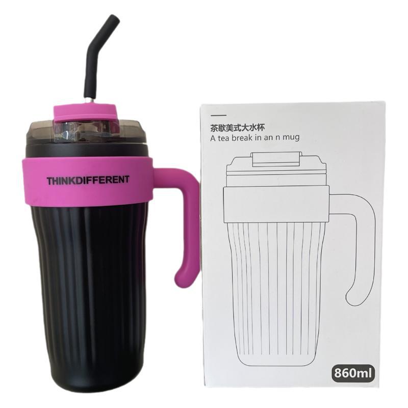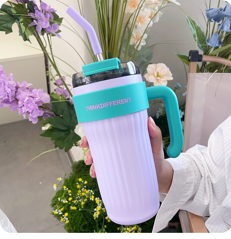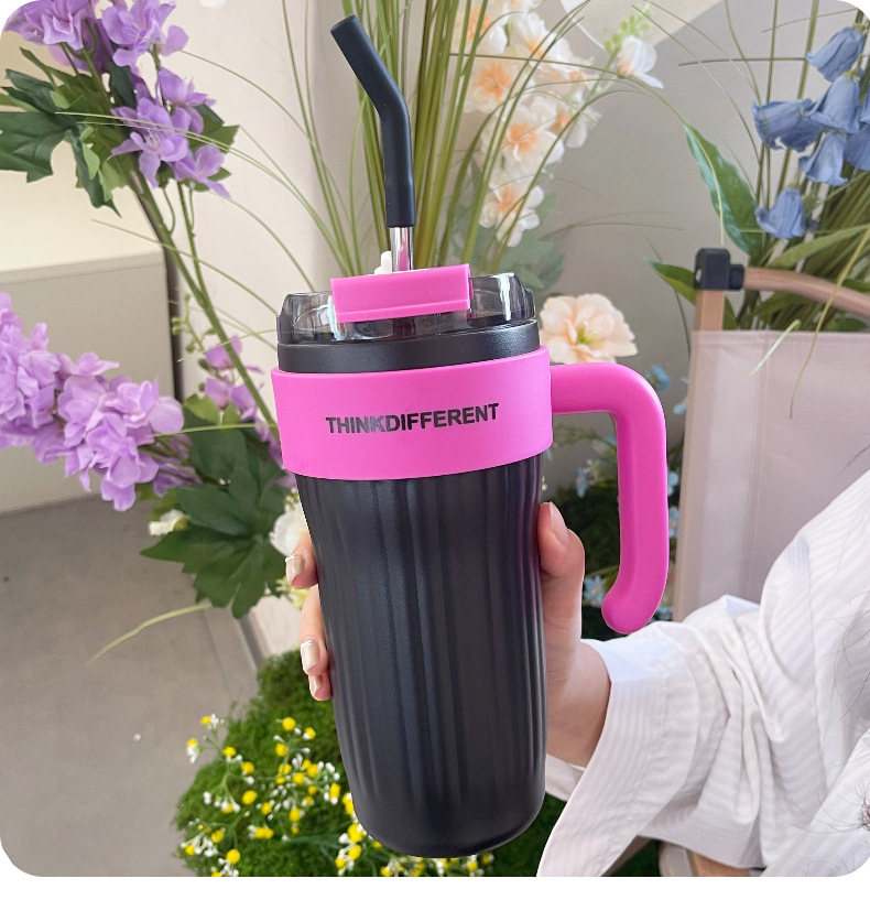 new large capacity giant vacuum cup for girls good-looking cold preservation cup with straw 304 stainless steel handle cup
