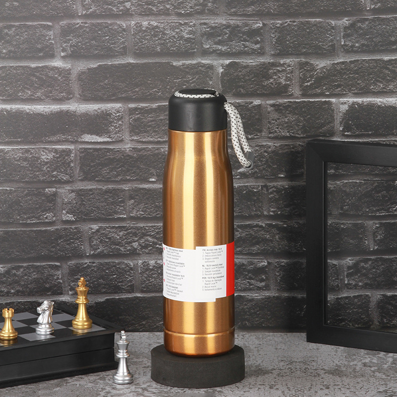 new creative 304 stainless steel sports water bottle belt rope holding vacuum knight cup outdoor portable double insulation cup