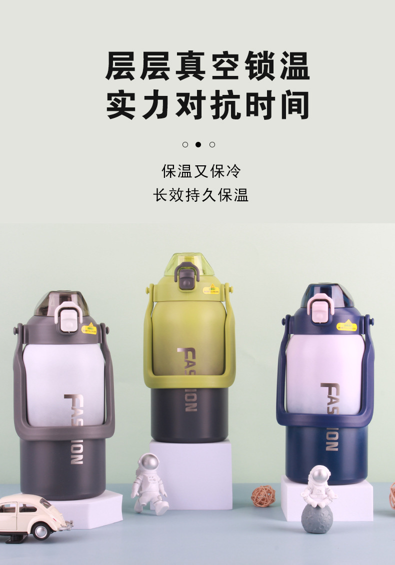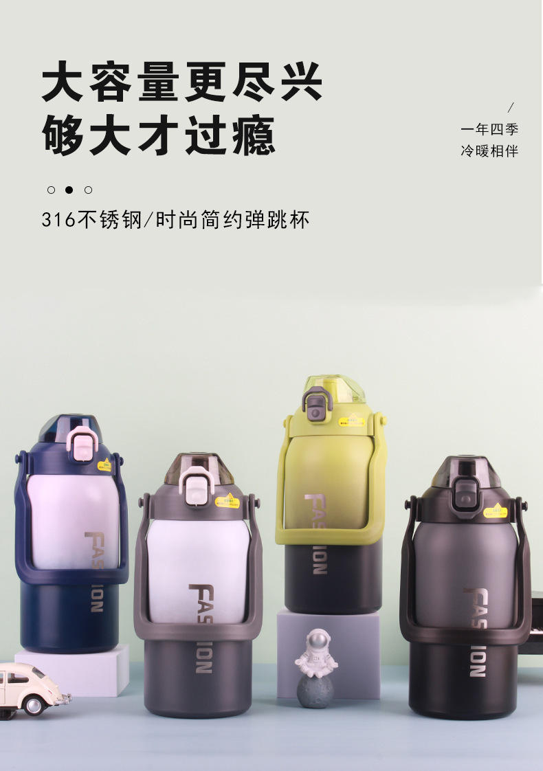 cross-border 316 stainless steel sports kettle gradient handle pot space pot thermos cup outdoor large capacity cup with straw