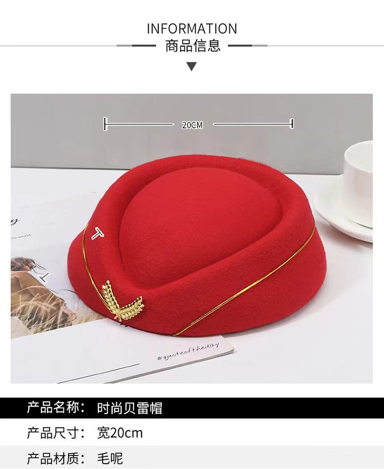 Stewardess Cap Women's Beret Korean Style Band Top Hat Stage Performance Hat British Fashion PR Hat