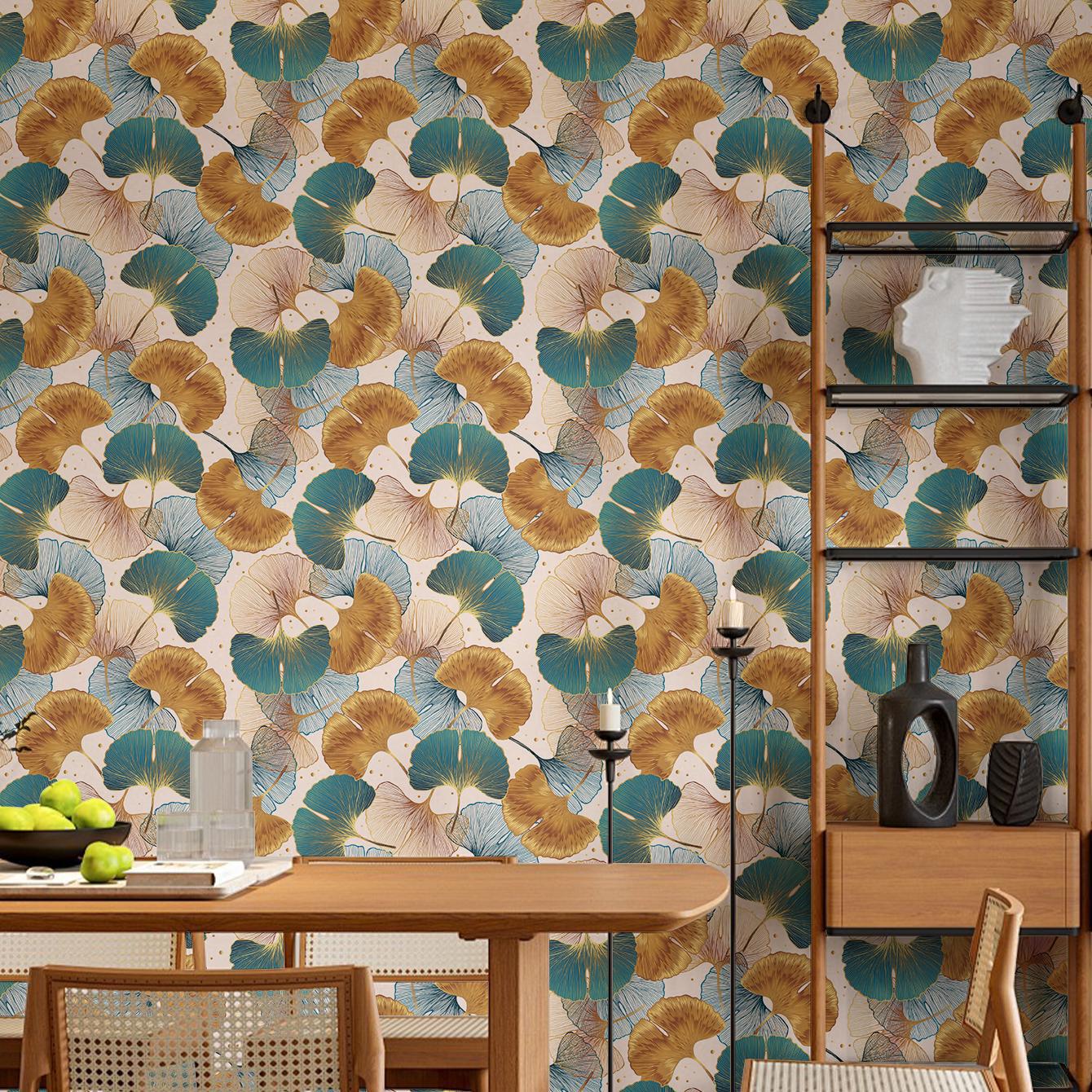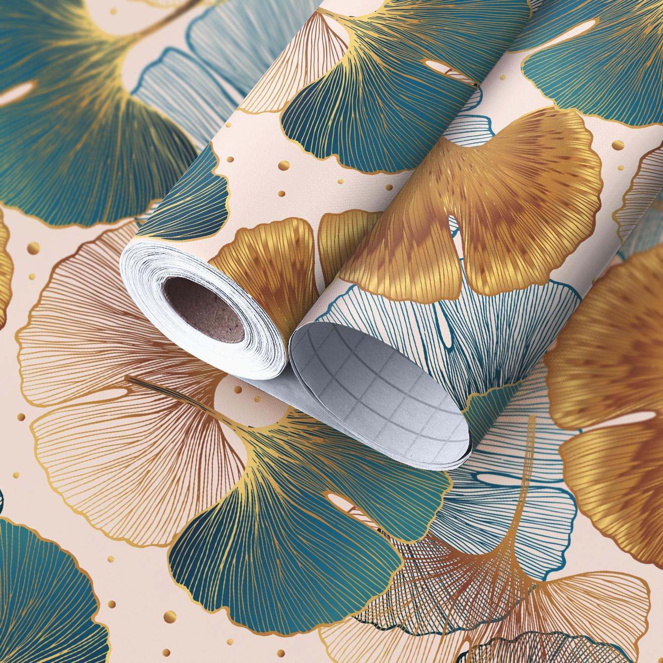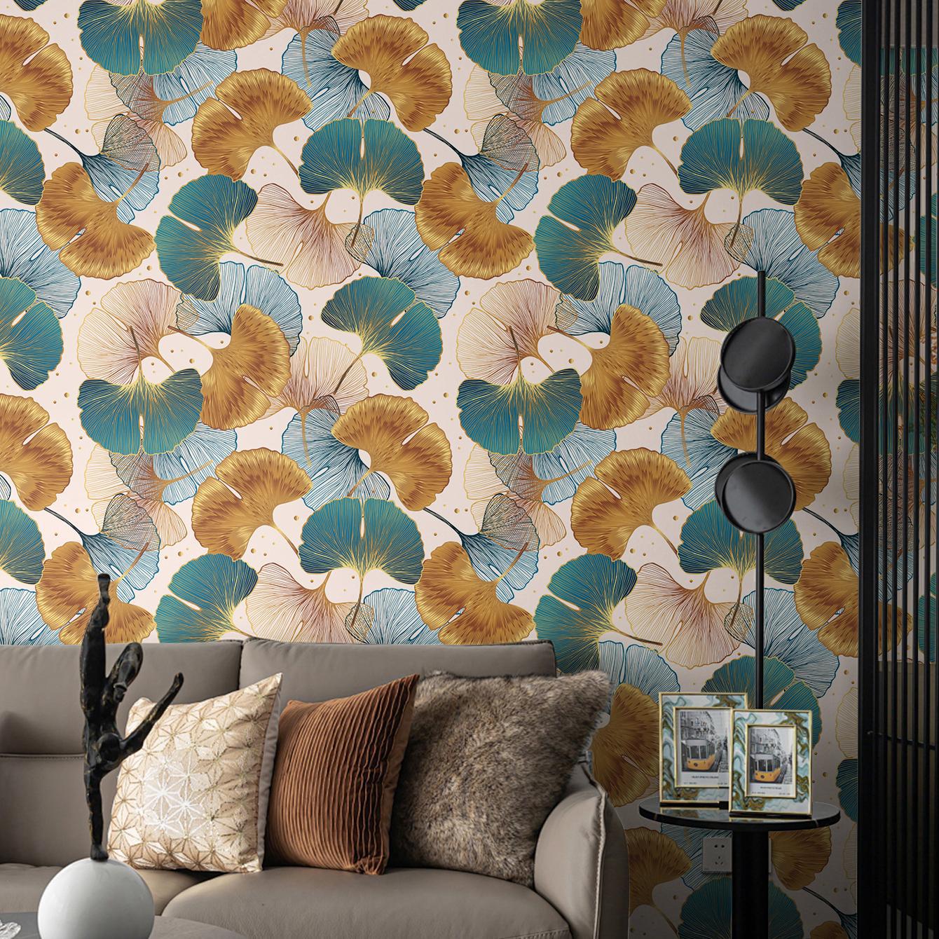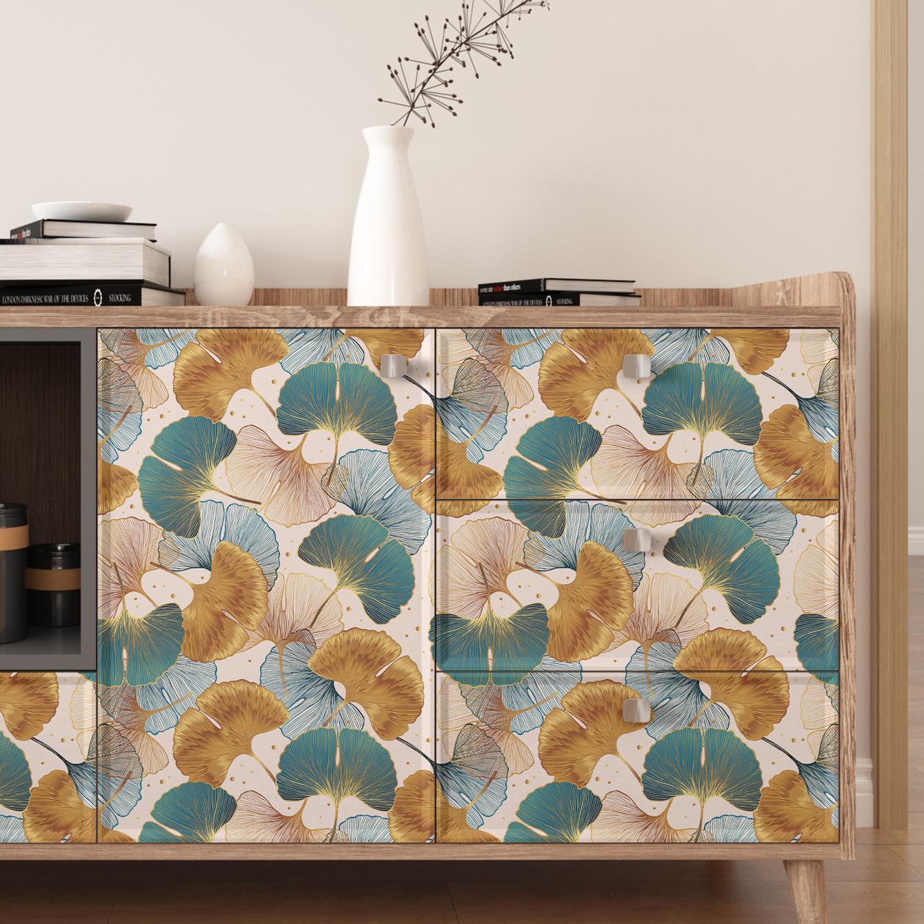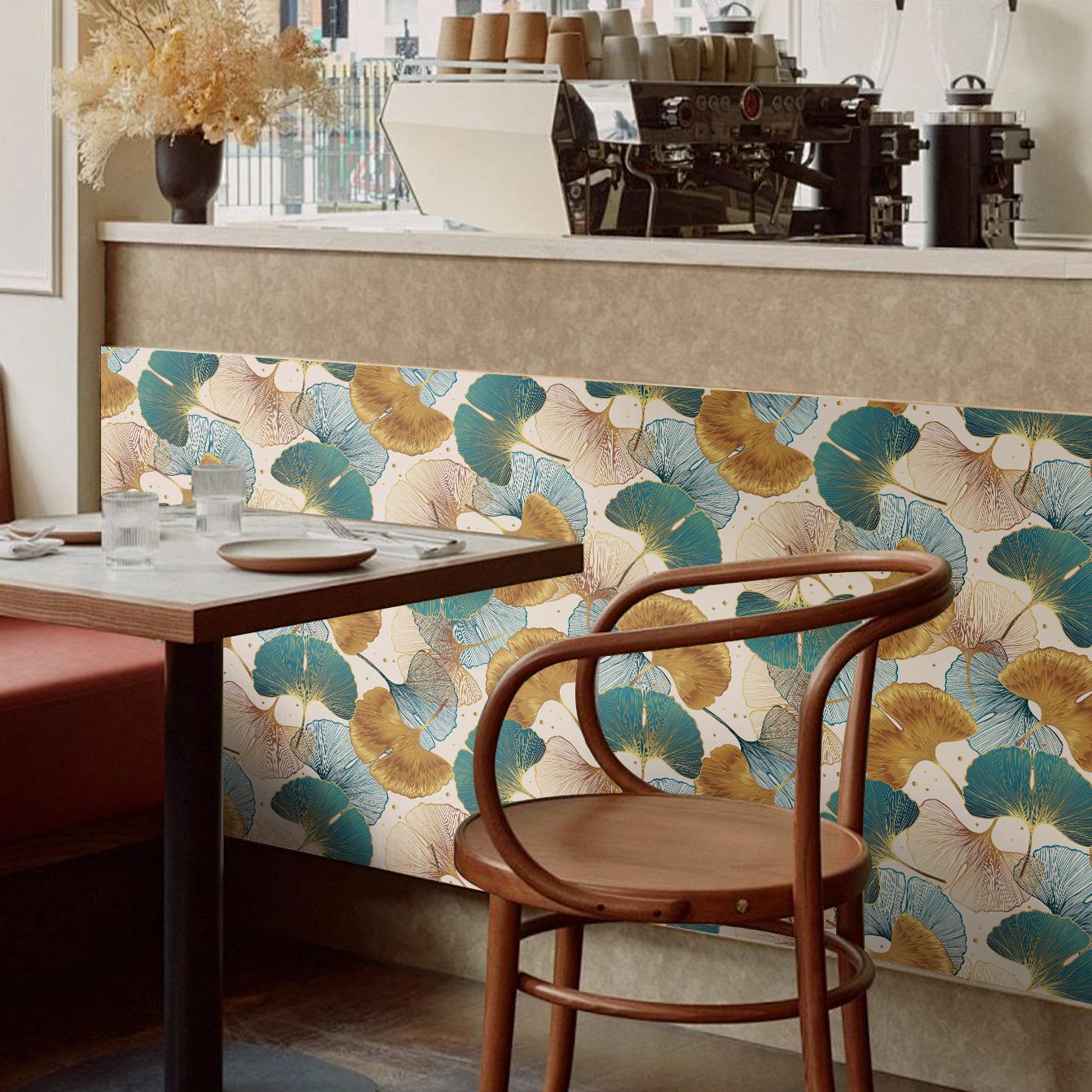 Blue and Gold Ginkgo Leaf Anti-oil Sticker, Environmental PVC Material