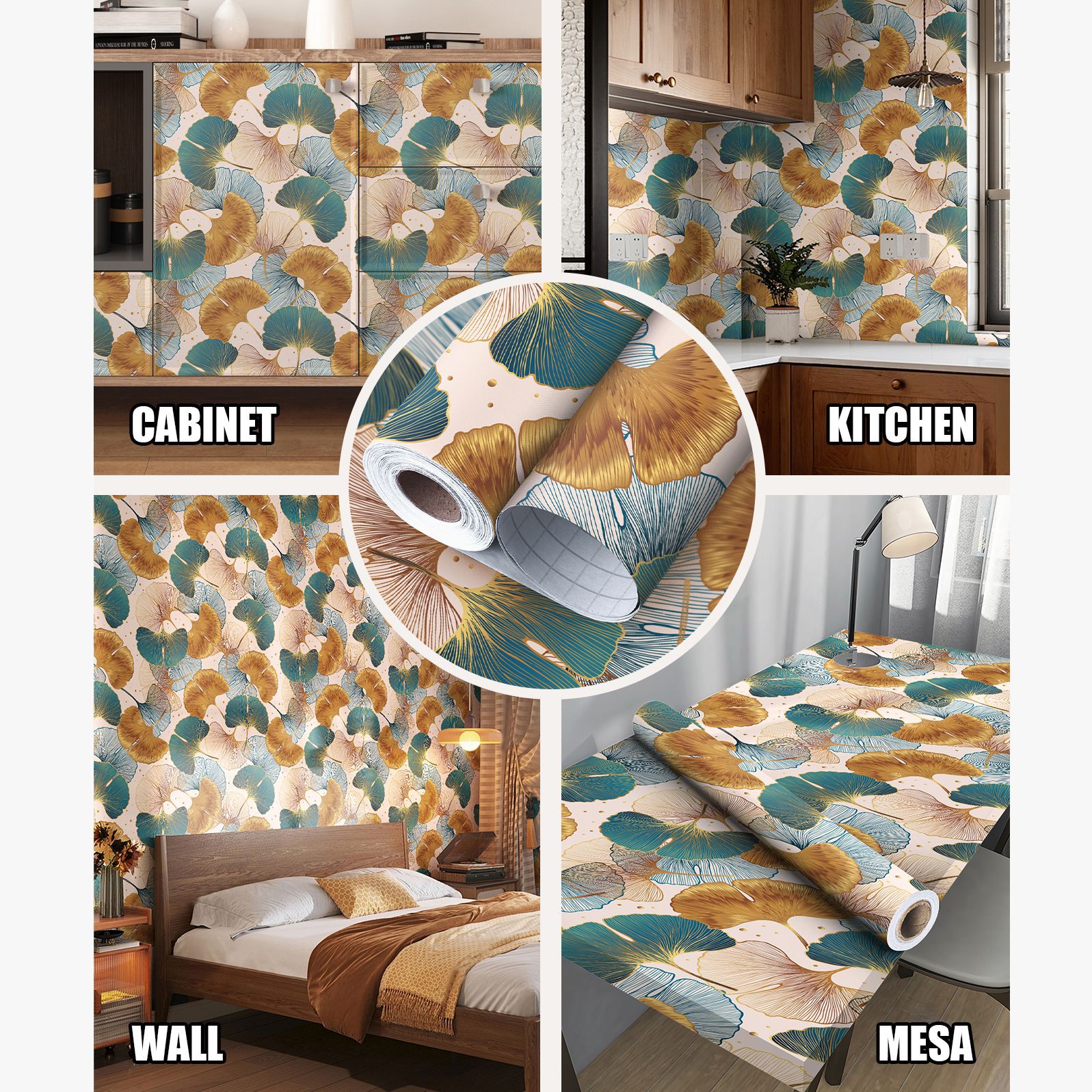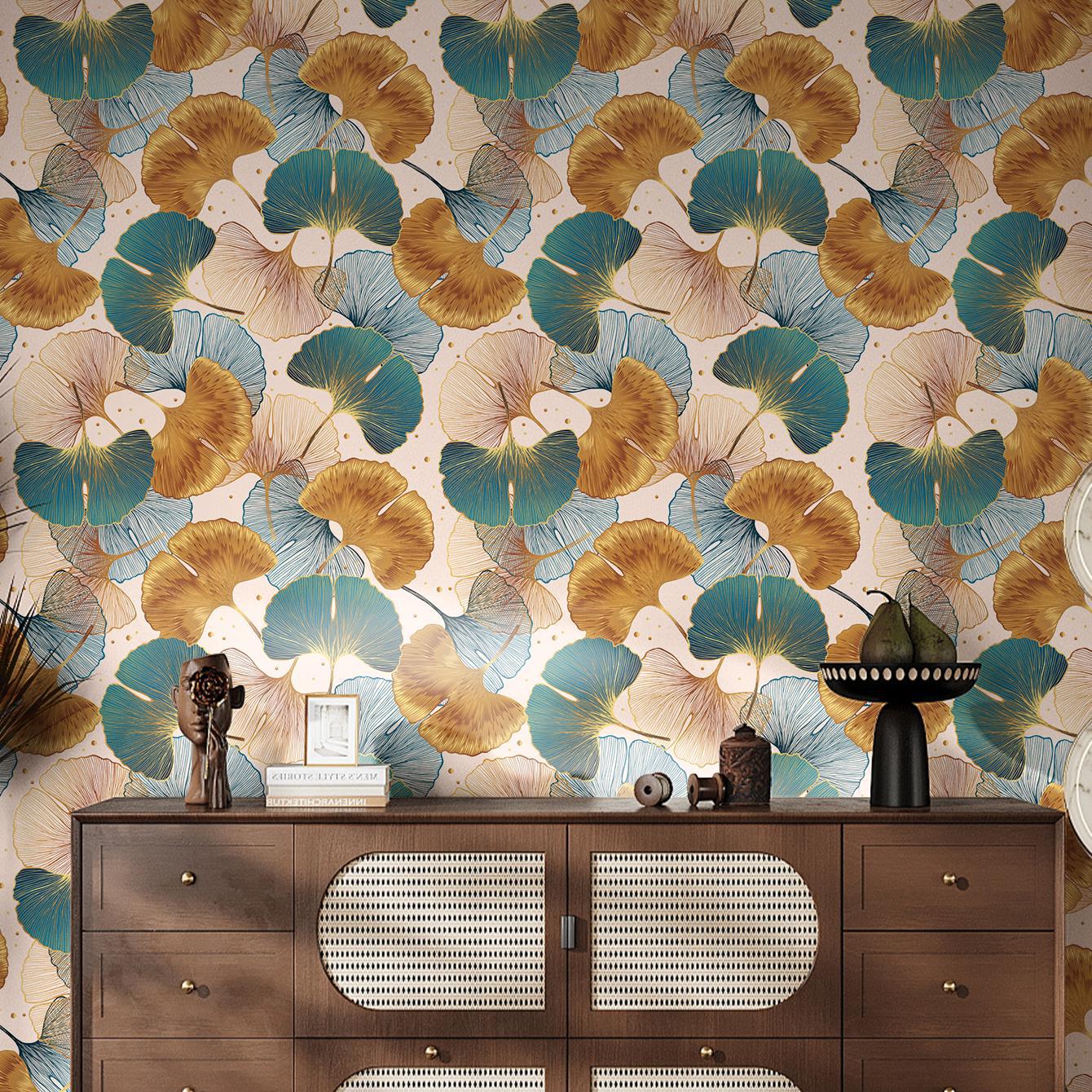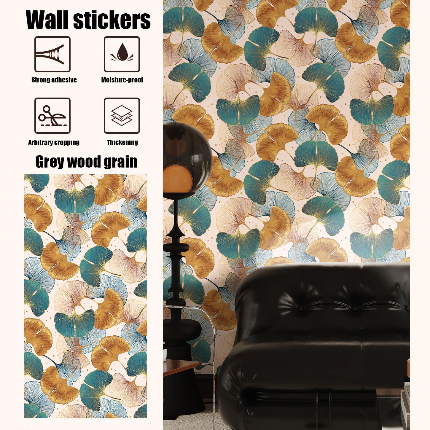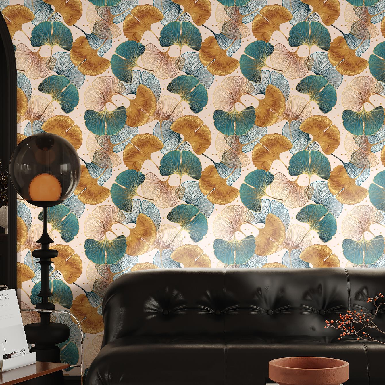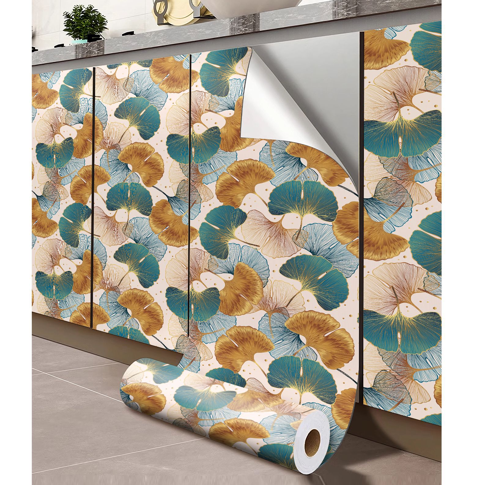Blue and Gold Ginkgo Leaf Anti-oil Sticker, Environmental PVC Material