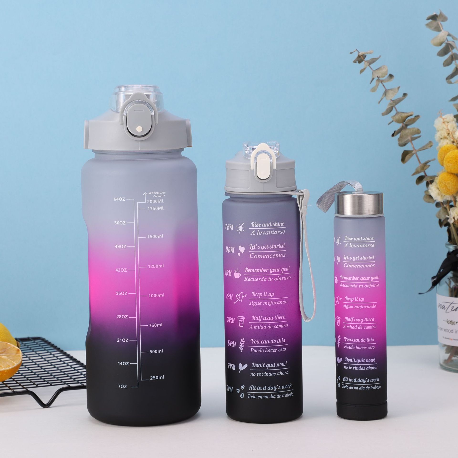 summer gradient sports plastic kettle three-piece cup set high temperature resistant with scale large capacity kettle factory wholesale