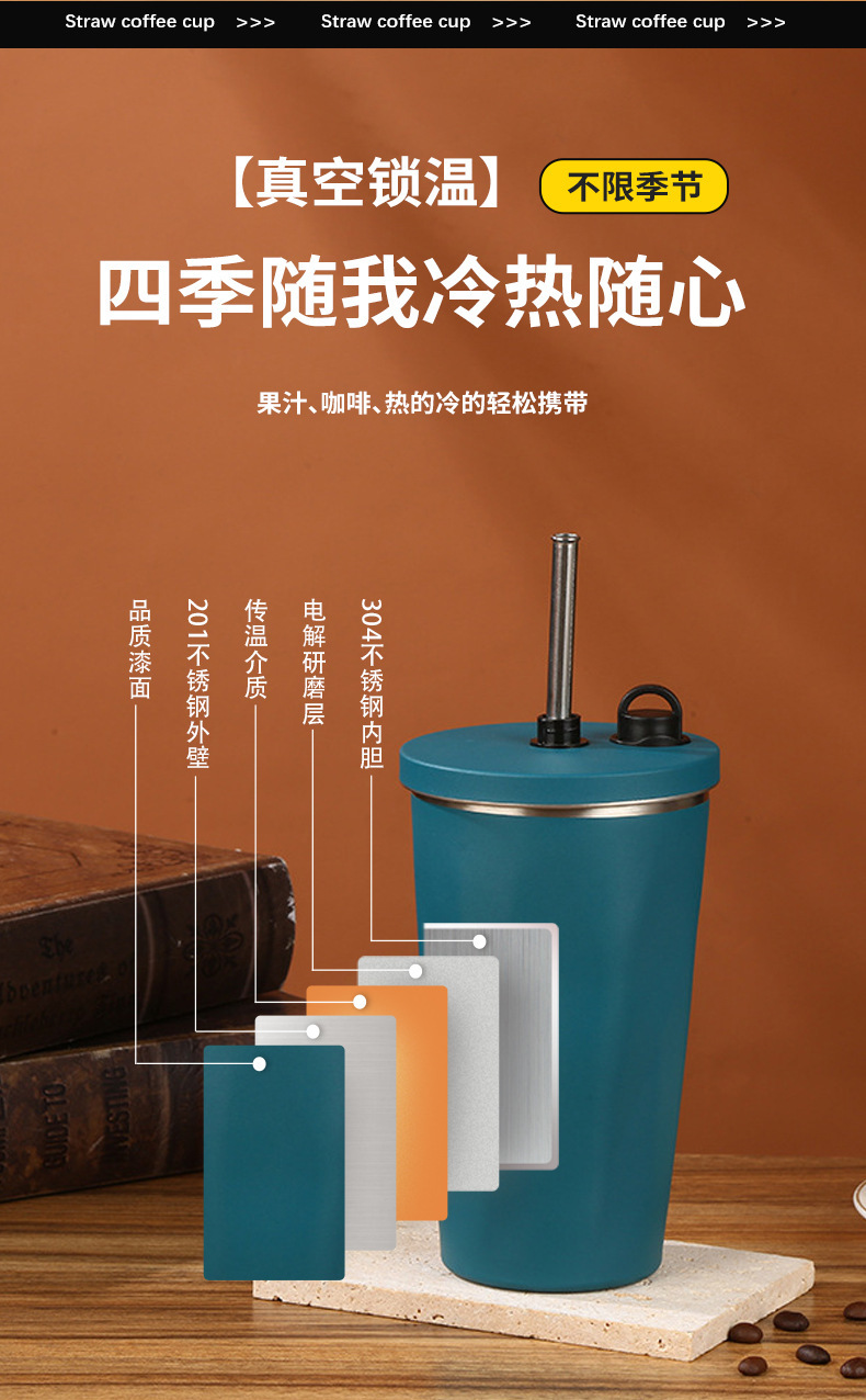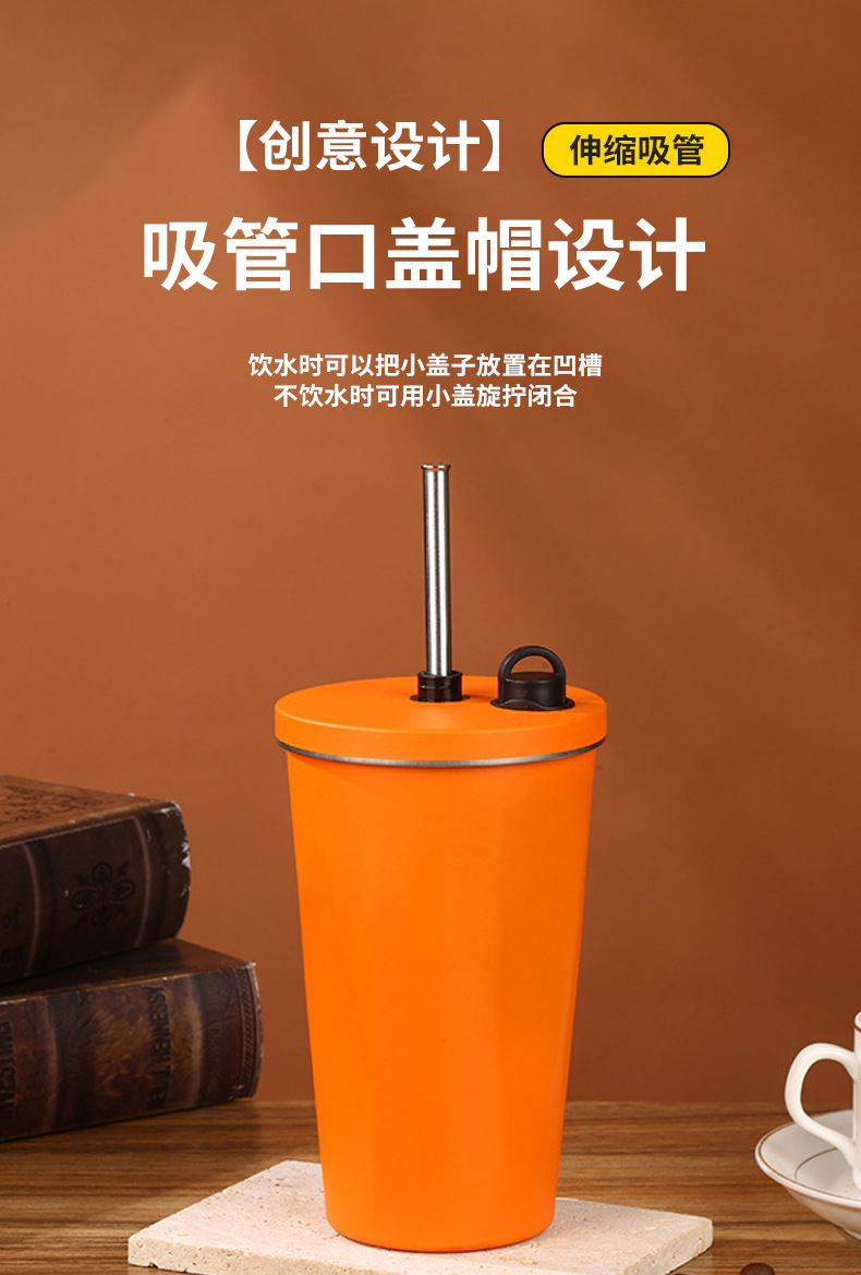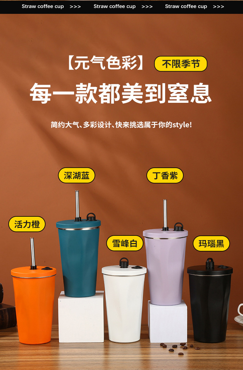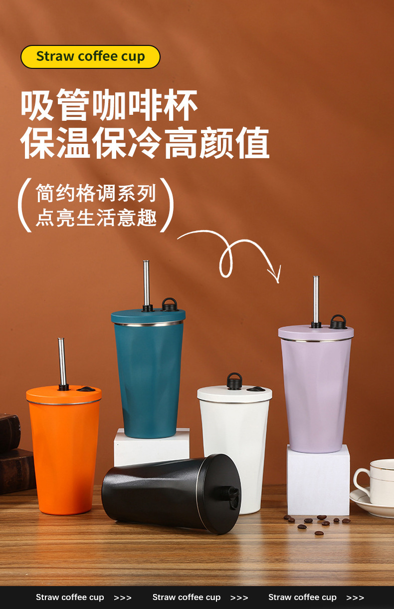 classic diamond coffee cup 304 stainless steel straw thermal insulation cup good-looking portable convenient vehicle-mounted home use water cup