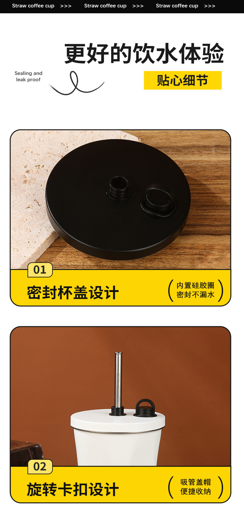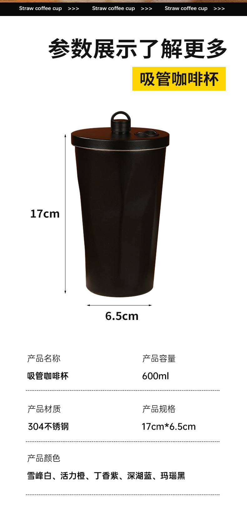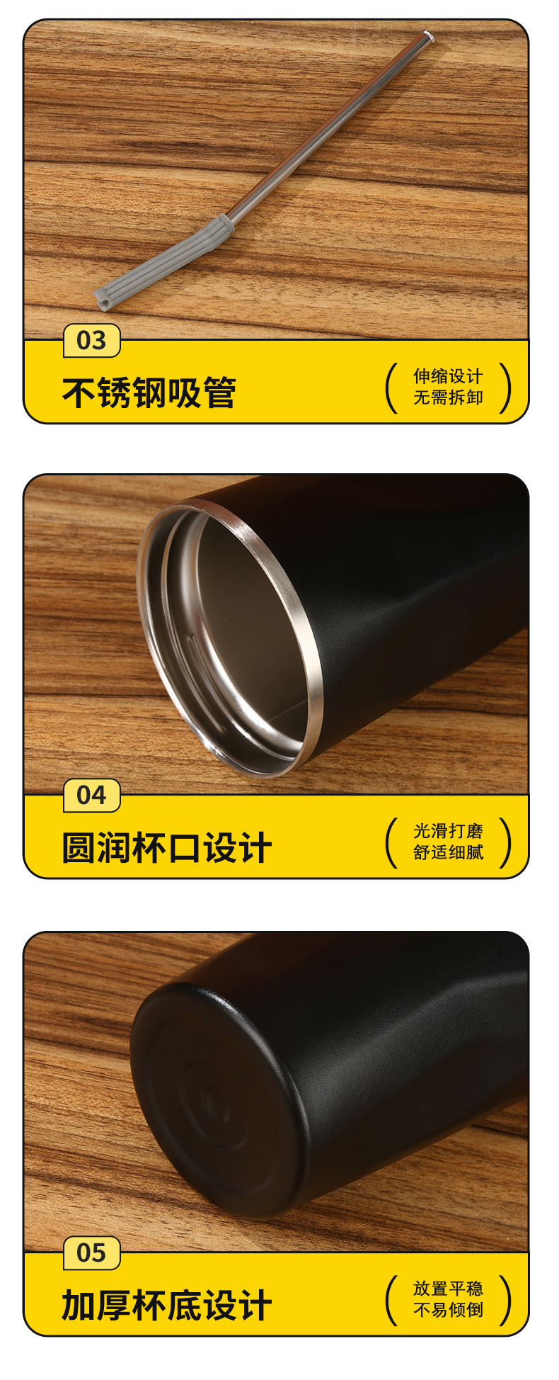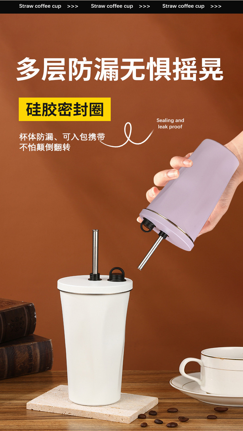 classic diamond coffee cup 304 stainless steel straw thermal insulation cup good-looking portable convenient vehicle-mounted home use water cup