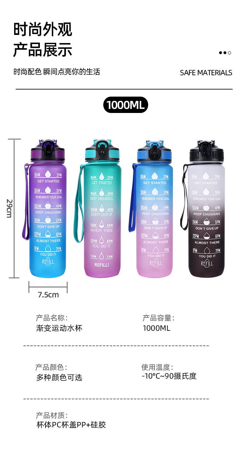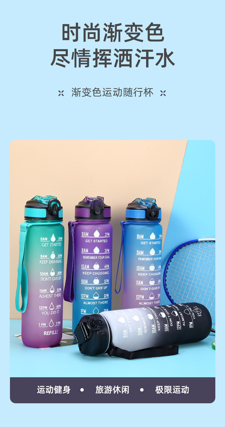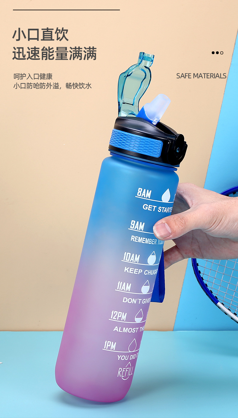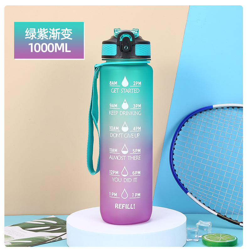 new plastic bullet cup 1000ml sports bottle portable frosted water bottle gradient color cup outdoor sports cup