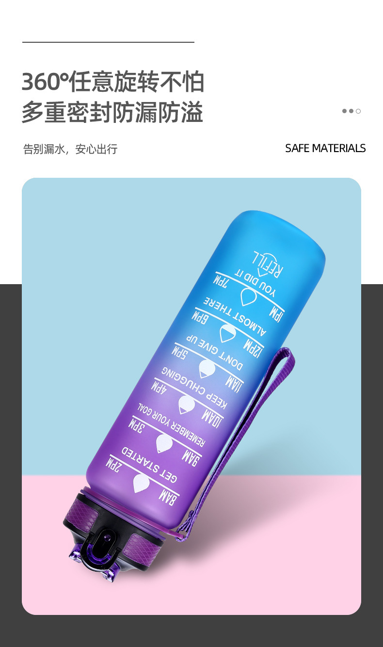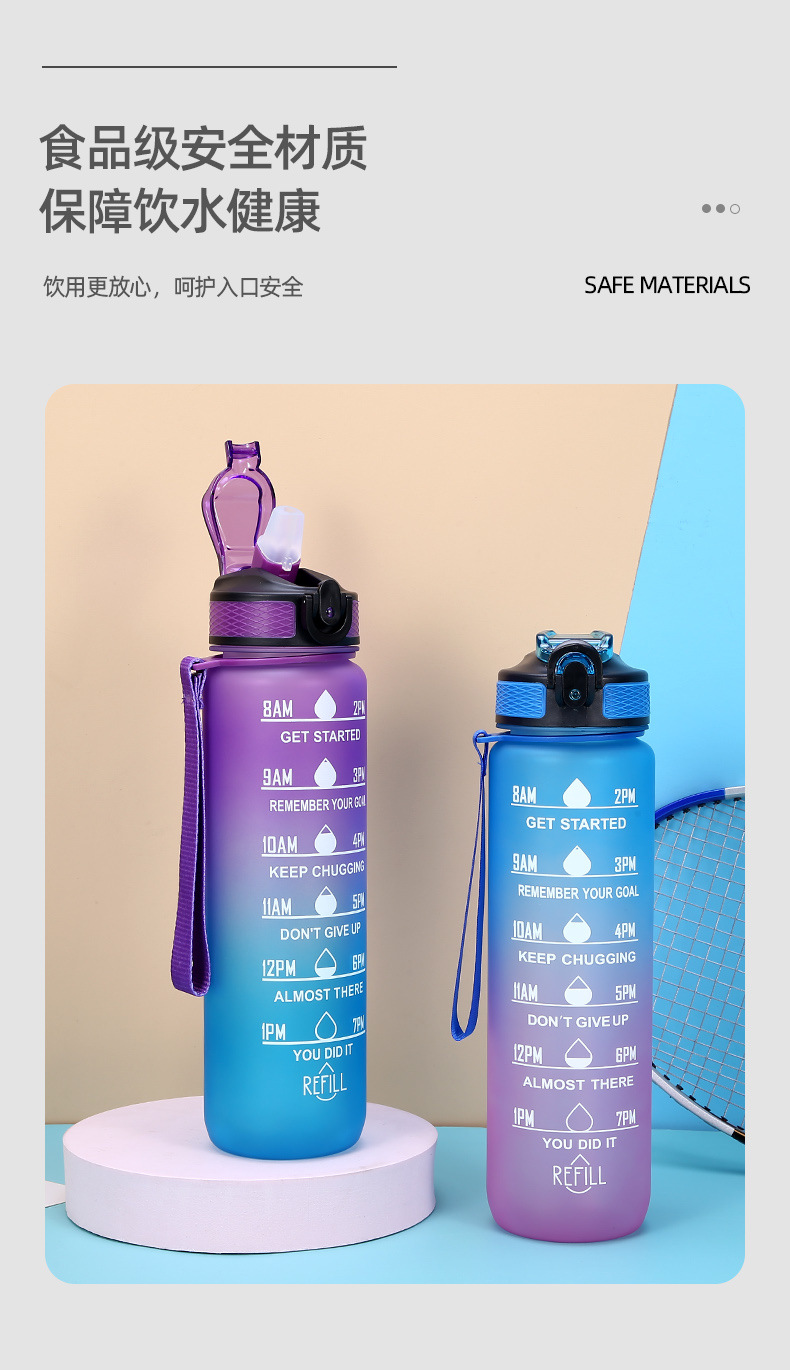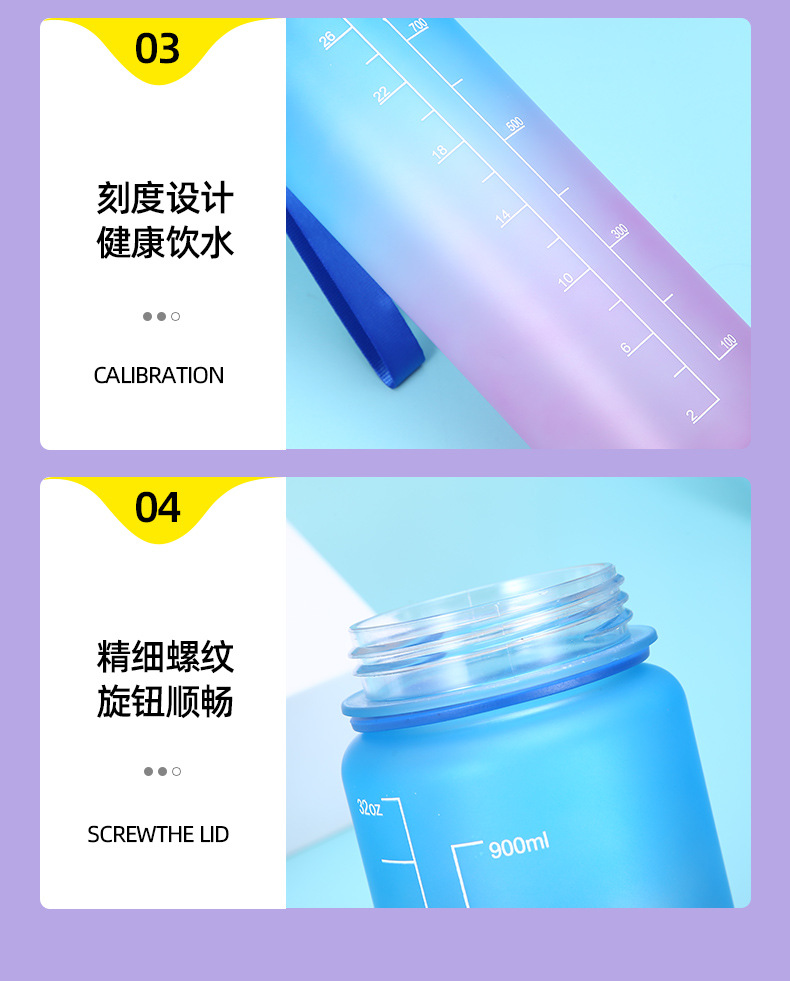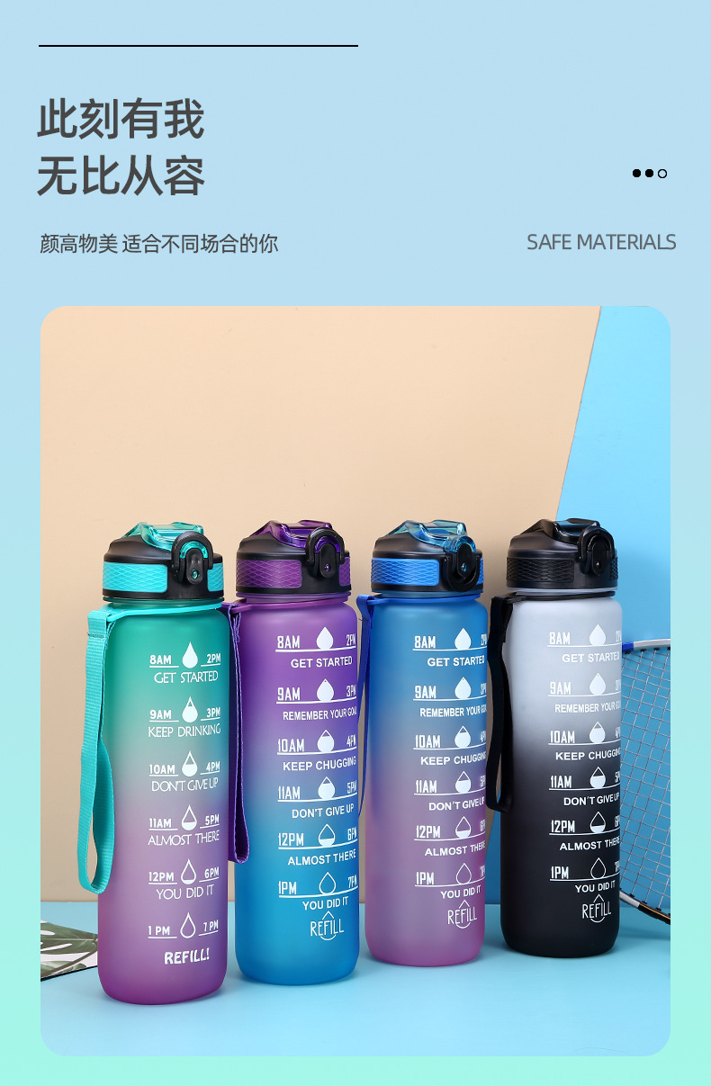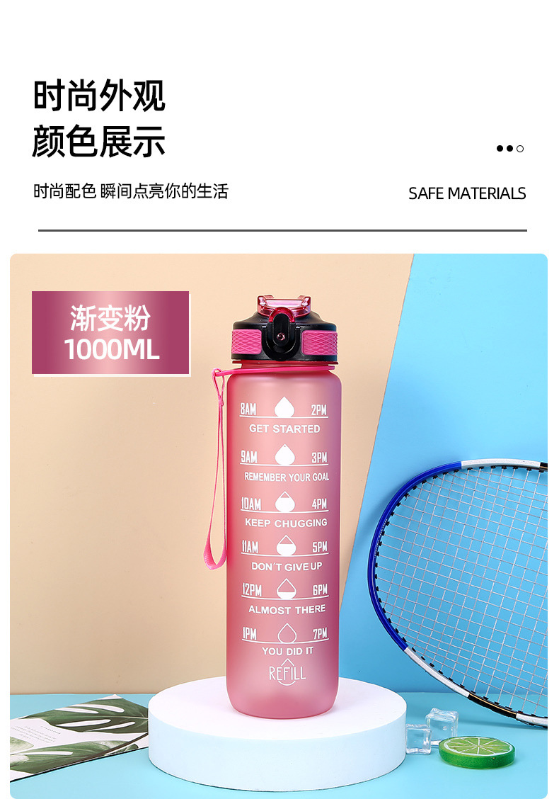 new plastic bullet cup 1000ml sports bottle portable frosted water bottle gradient color cup outdoor sports cup