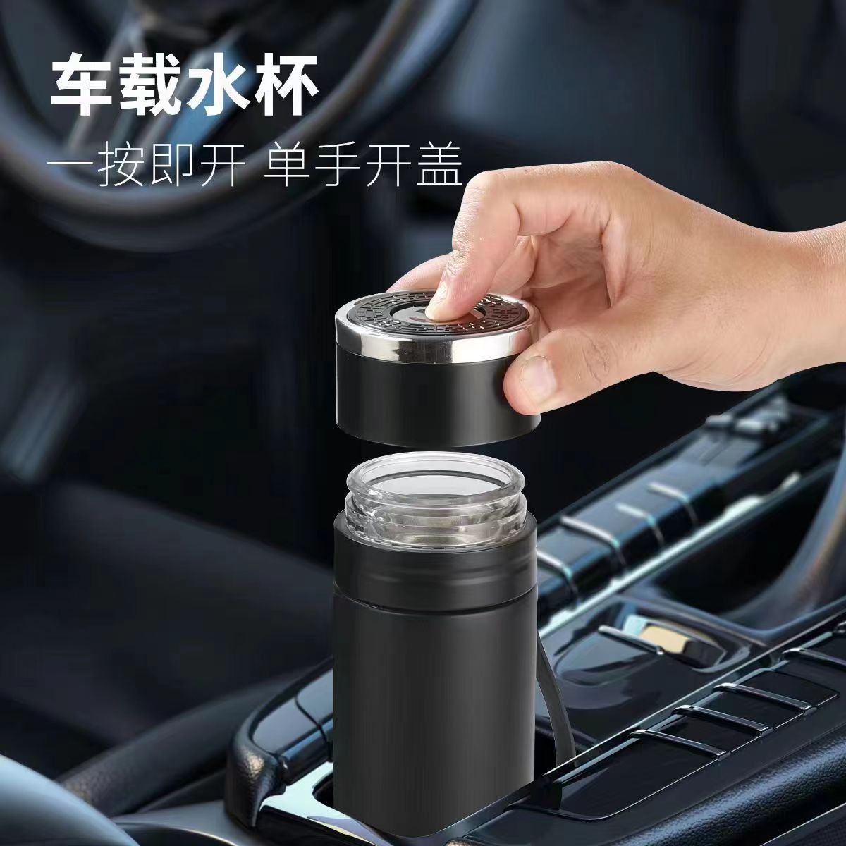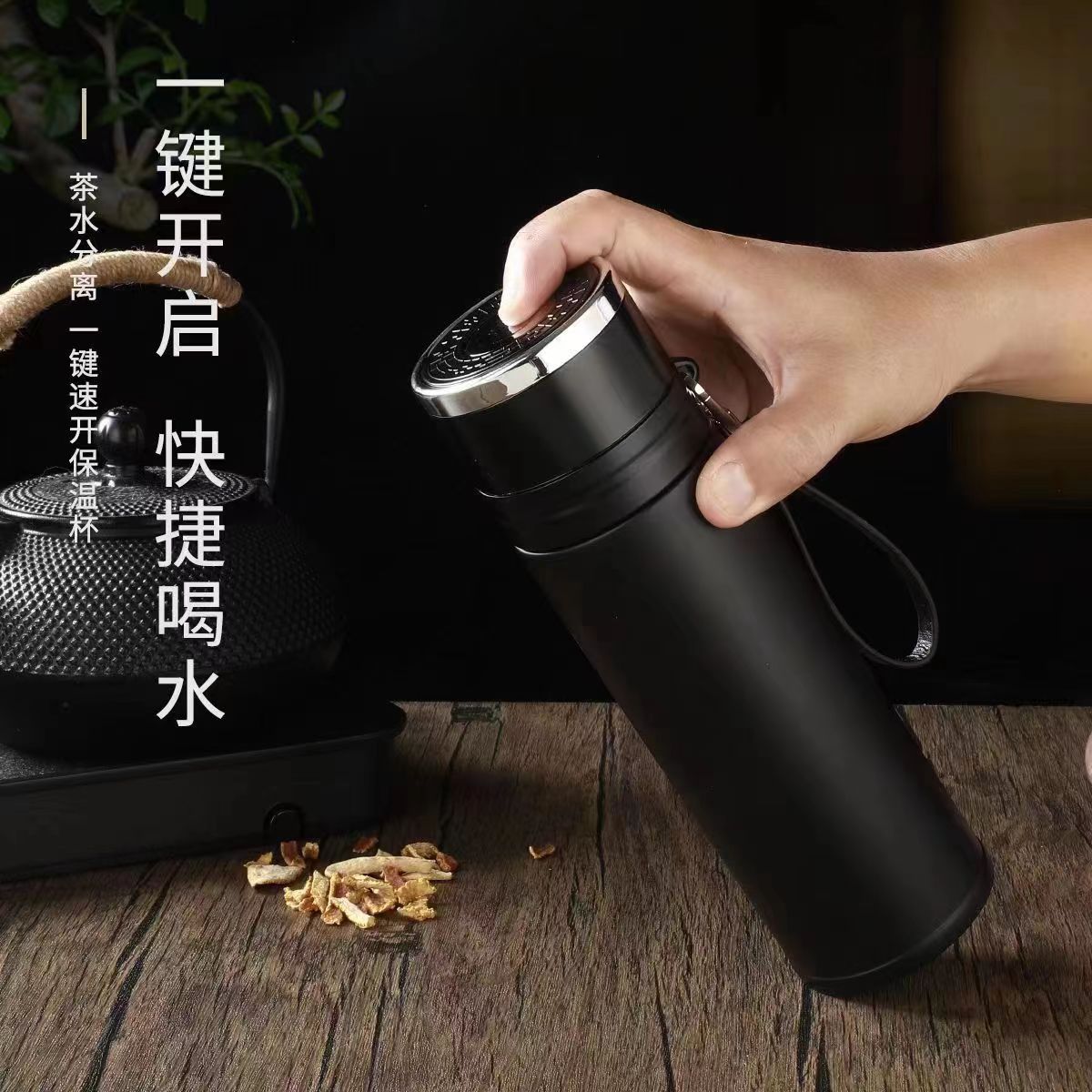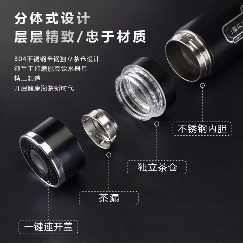 one-click open vacuum cup portable sling car water cup high-grade tea water separation cup double-layer stainless steel kettle
