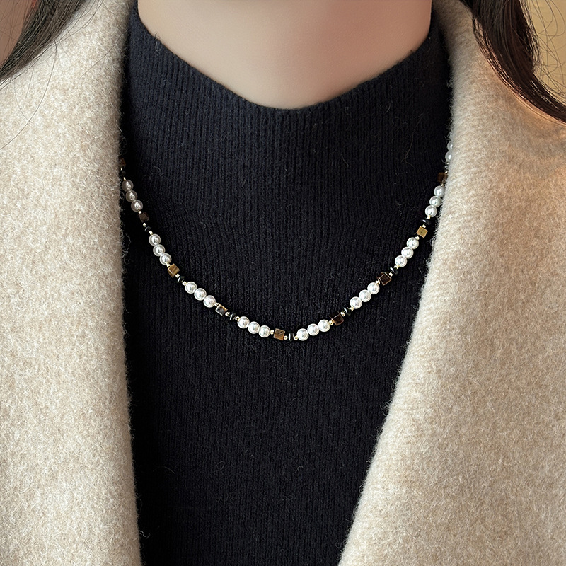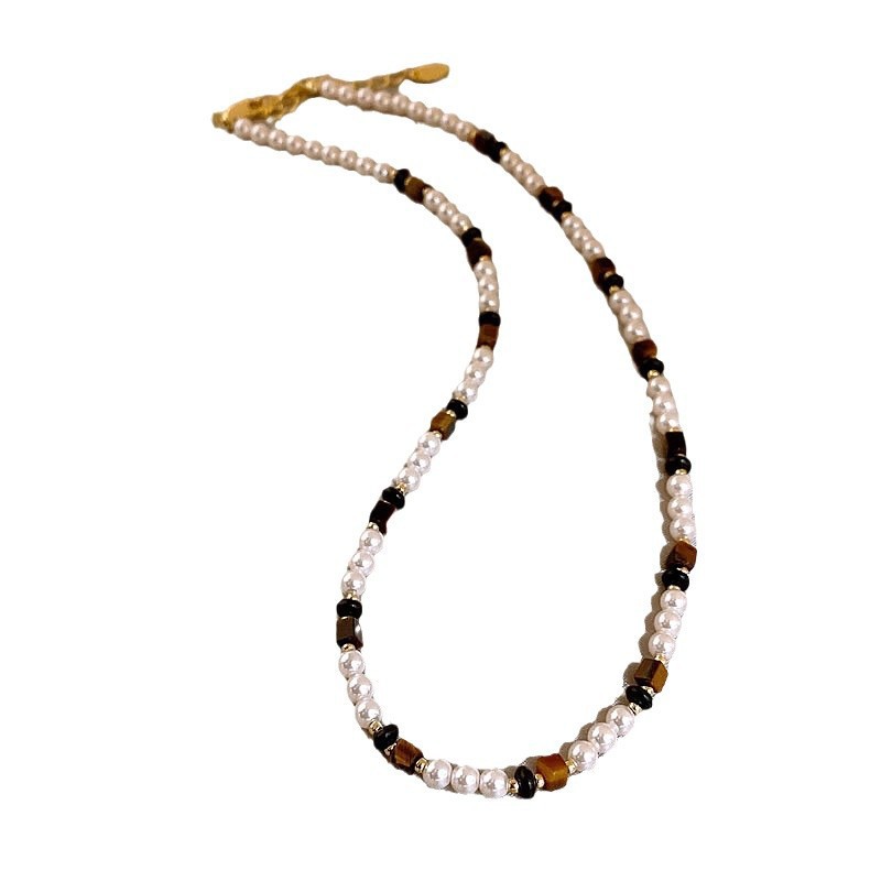 square tigereye small pearl necklace