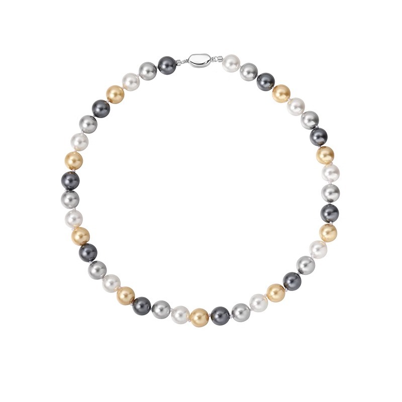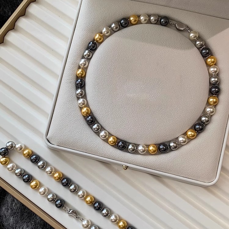 mixed color shijia pearl 10mm stainless steel yuanbao knot necklace