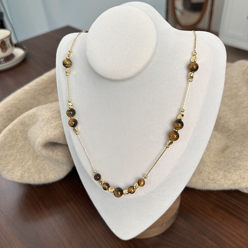 long gold necklace tiger eye stone necklace