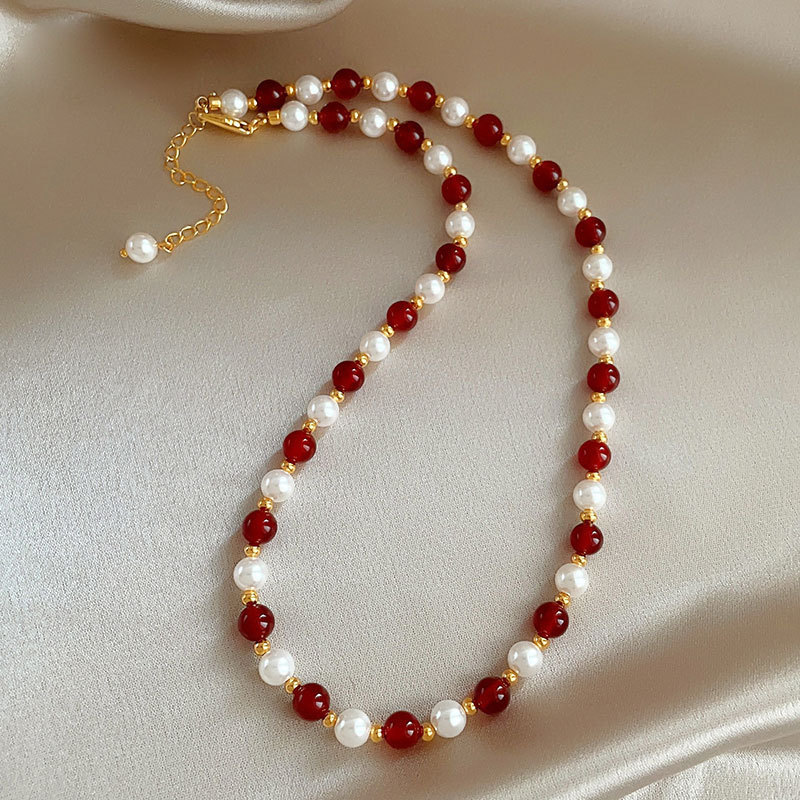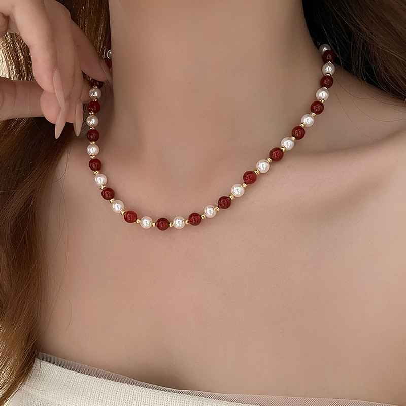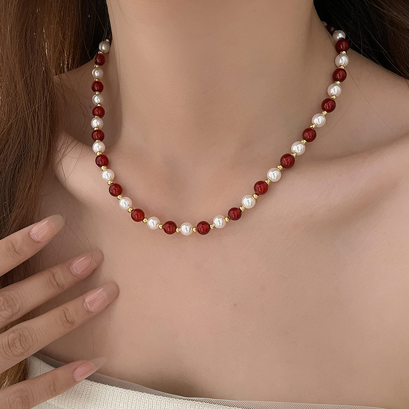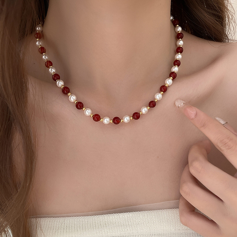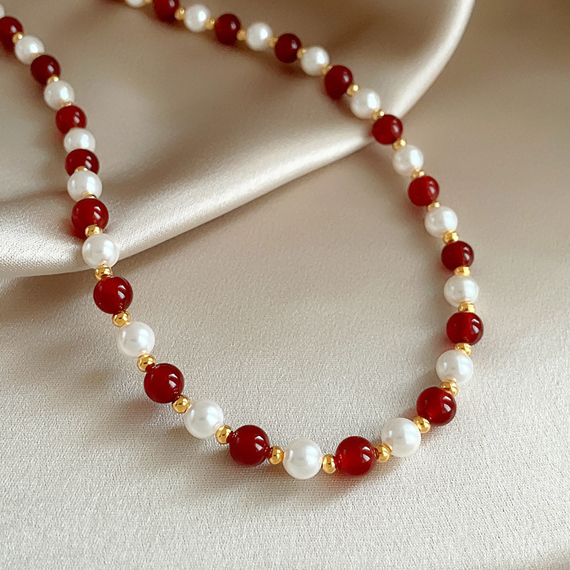 red agate glass pearl necklace