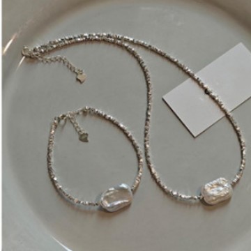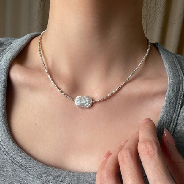square baroque silver-plated necklace