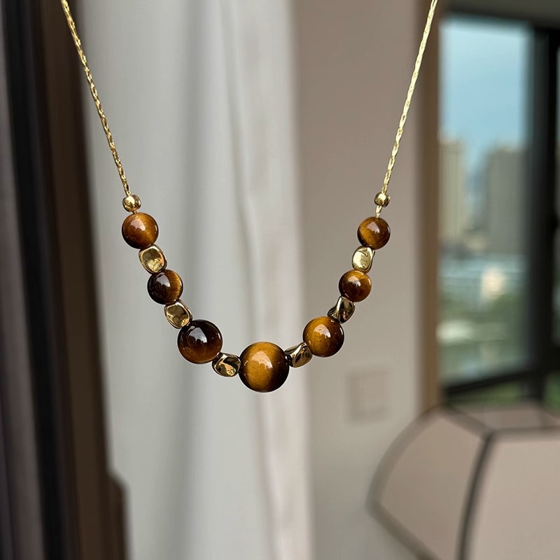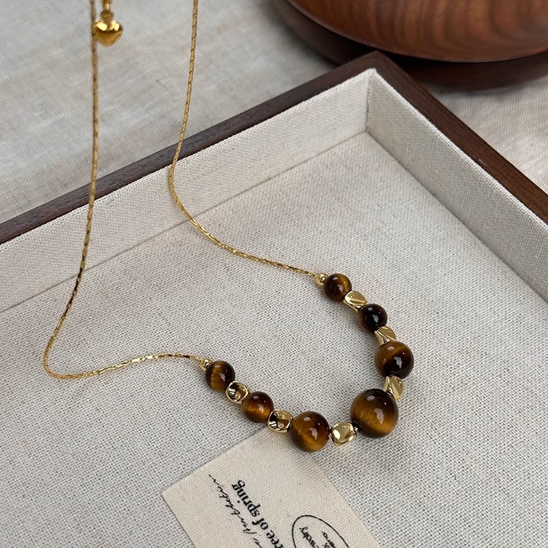 gold necklace tiger eye stone necklace