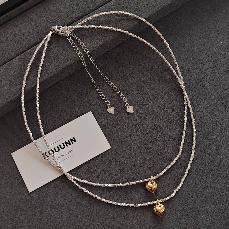 small pieces of silver three-dimensional love necklace