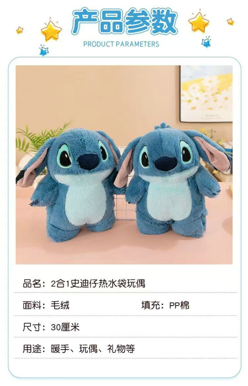 stitch plush toy hand warmer plush coat girls' winter hot water injection bag doll